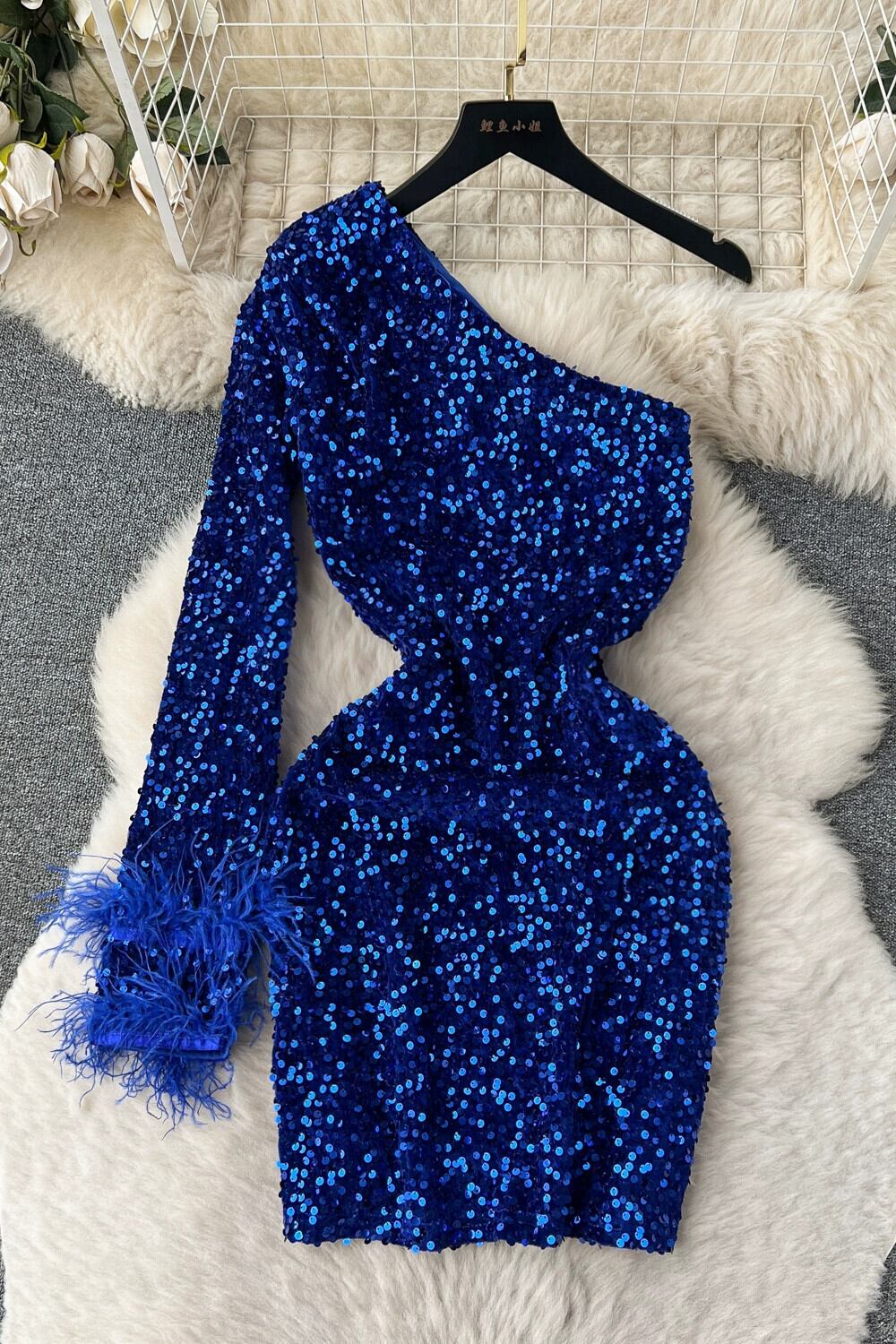 レトロな女性スタイルの光沢のある斜め襟ドレス女性の夏の羽スパンコールデザインウエストカバーヒップショートスカート サマー 夏物 lyxaj92930974520
