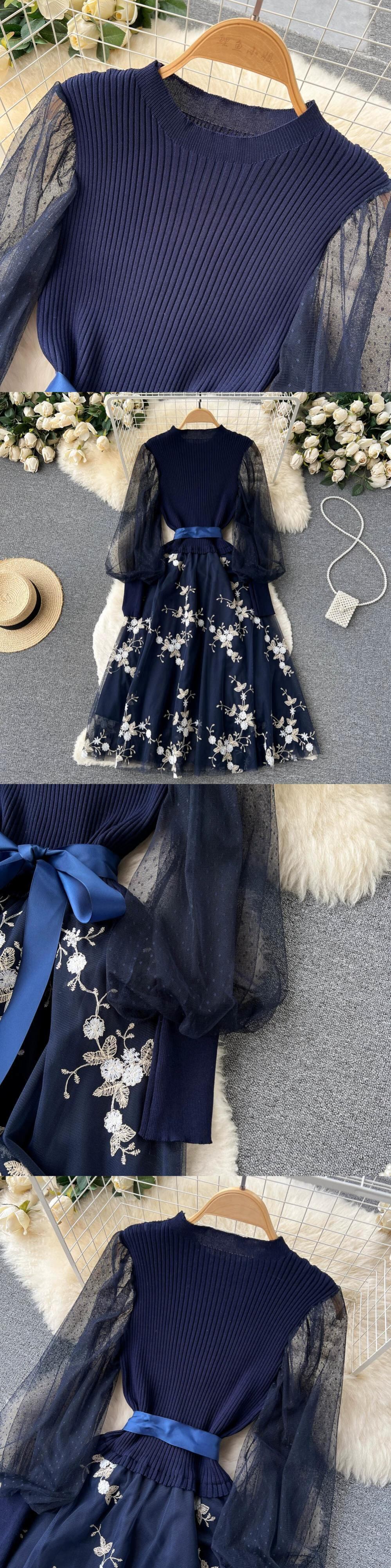 秋の新スタイルヨーロッパとアメリカンスタイルのフレンチヘップバーンスタイルのリトルブラックドレスAライン重工業刺繍レースメッシュドレス レッド オータム 秋物 ヨーロピアン lyxaj35620863111