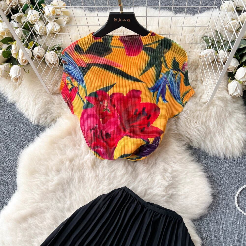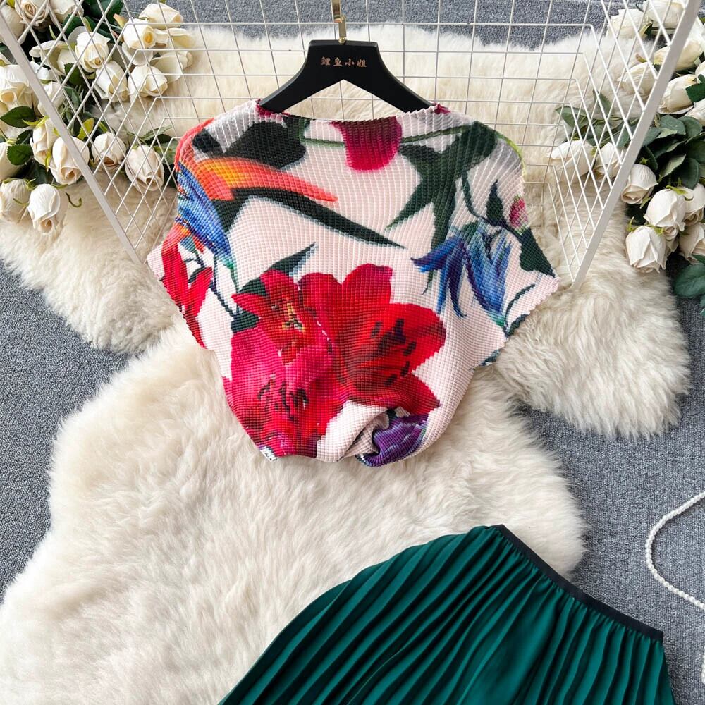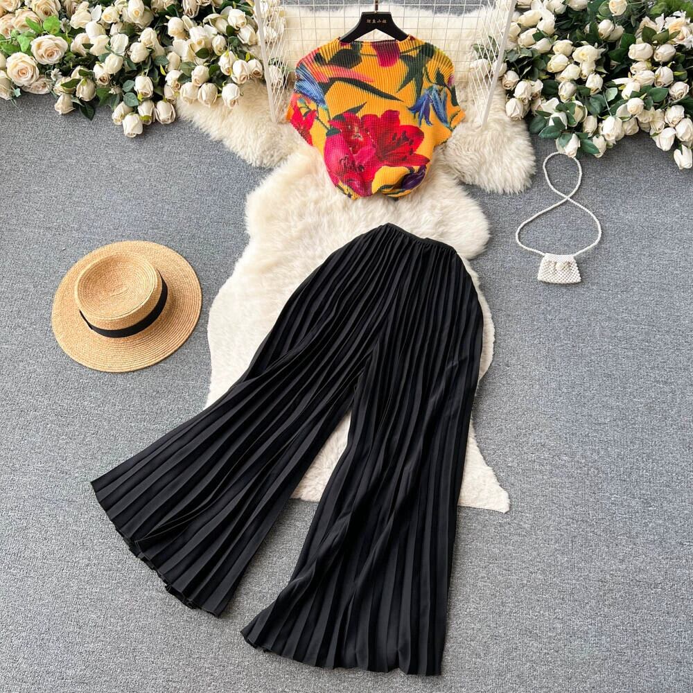 ヨーロッパとアメリカンスタイルのファッションロイヤルスーツの女性、夏のフランスの高級プリントトップ+ゆったりとしたプリーツのワイドレッグパンツ サマー 夏物 ヨーロピアン lyxaj99847584211