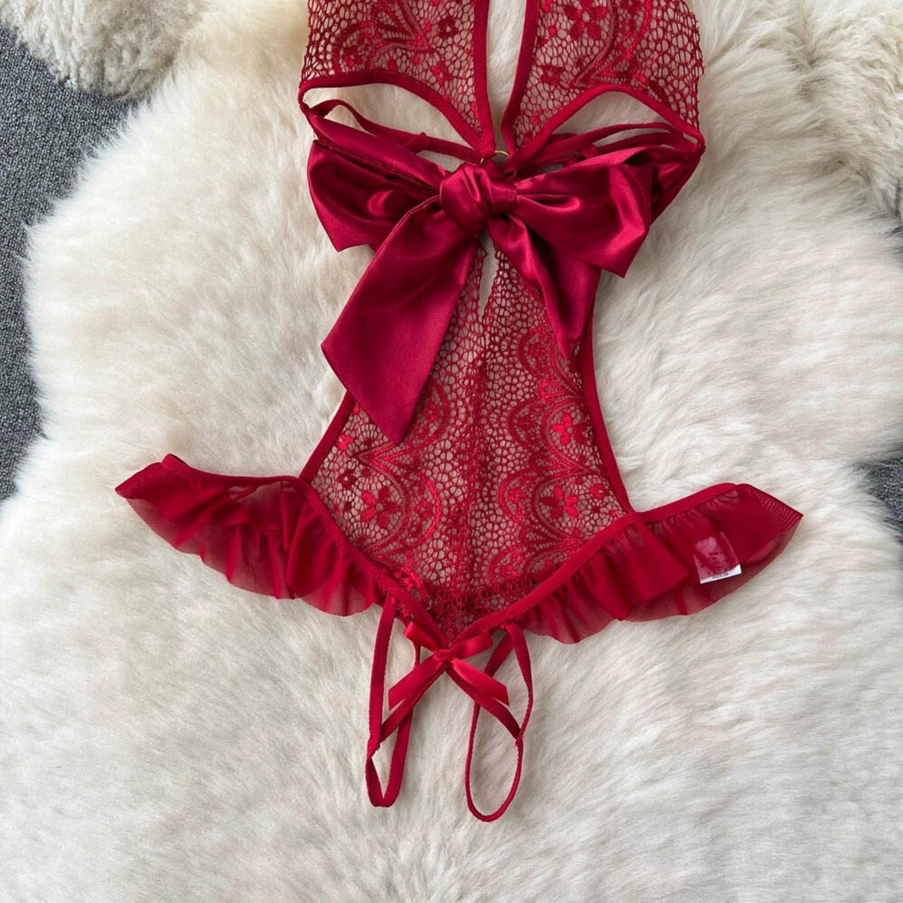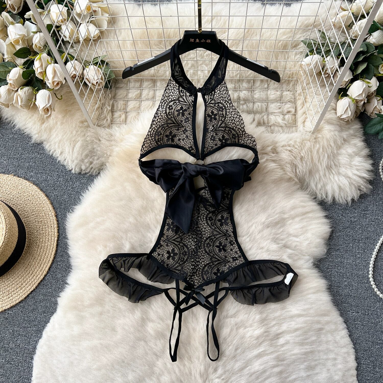夏のセクシーな純粋な欲望スタイルジャンプスーツ女性のセクシーなパジャマレースレース中空ホルターネックスリムフィットシースルージャンプスーツ サマー 夏物 ピュア lyxaj34641878790