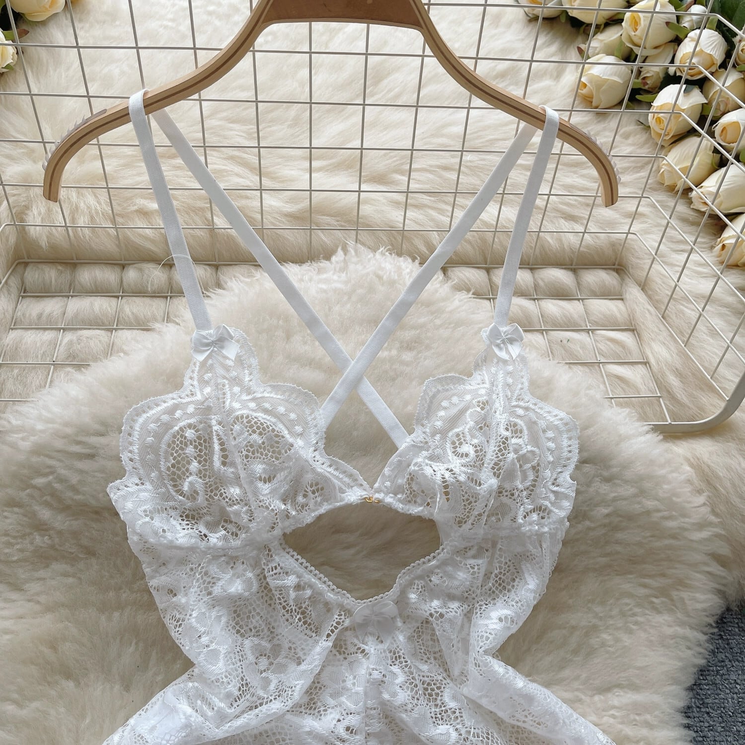 ヨーロッパとアメリカのセクシーな中空かぎ針編みレースシースルージャンプスーツ女性の痩身ハイカットバックレスワンピースセクシーな下着 ヨーロピアン lyxaj45639416407