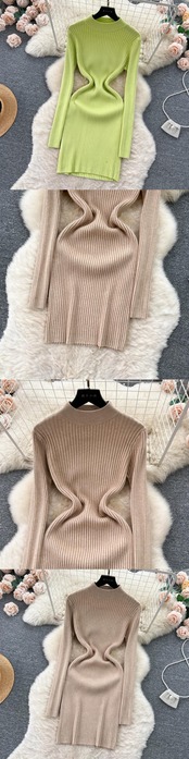 秋と冬のニッチなハイエンドの長袖ハーフタートルカラーニットドレスの女性、ヒップにぴったりフィットするセータースカートでタイトフィットでスリムです。 ロング オータム 秋物 ウィンター 冬物 lyxaj55003363013