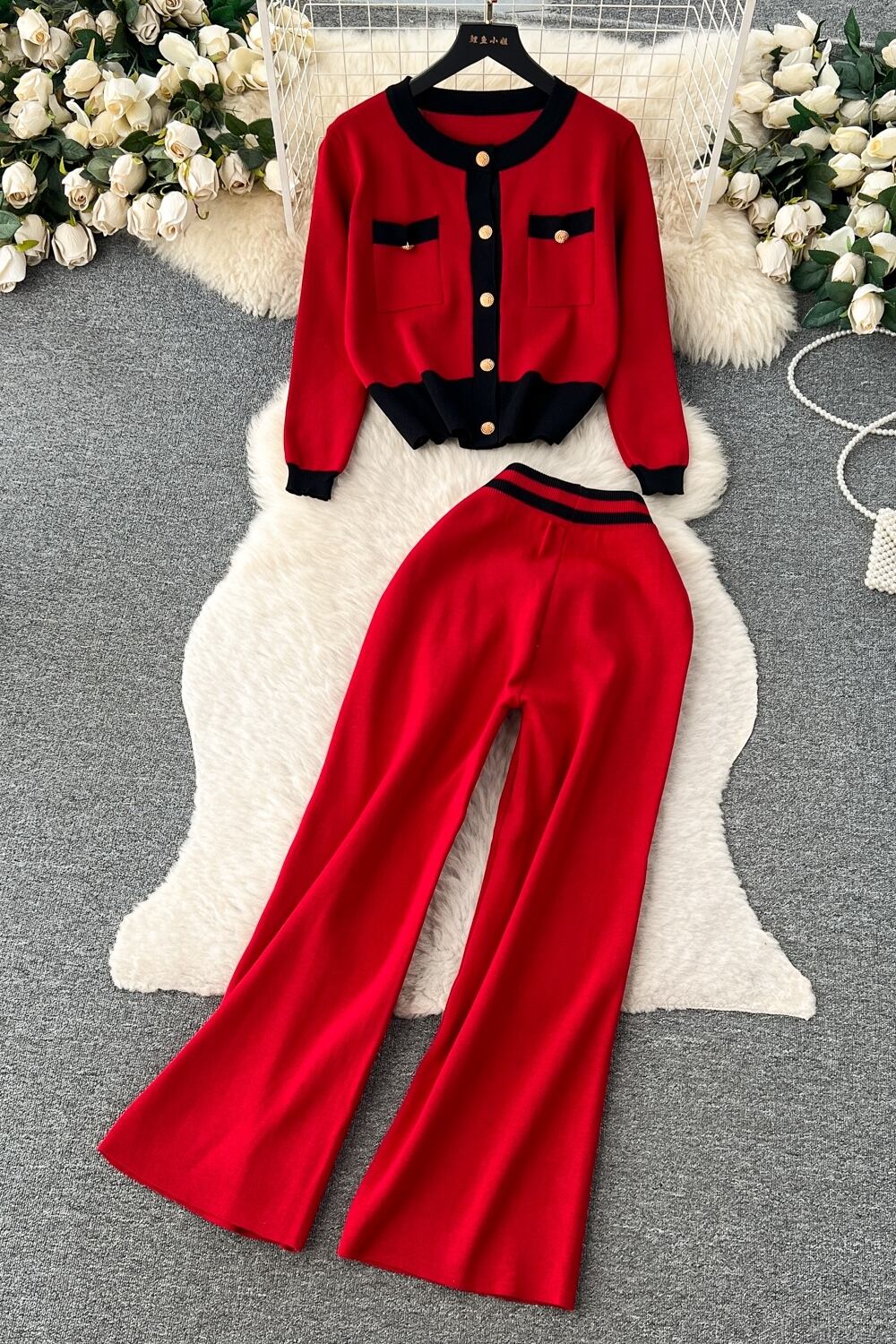 秋と冬のフランスの軽い豪華でハイエンドのシングルブレストのセーター + ハイウエストのスリムでスリムなパンツスーツの女性 オータム 秋物 ウィンター 冬物 lyxaj13152631134