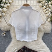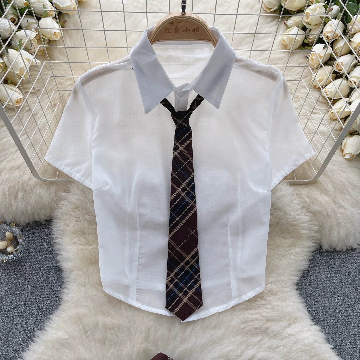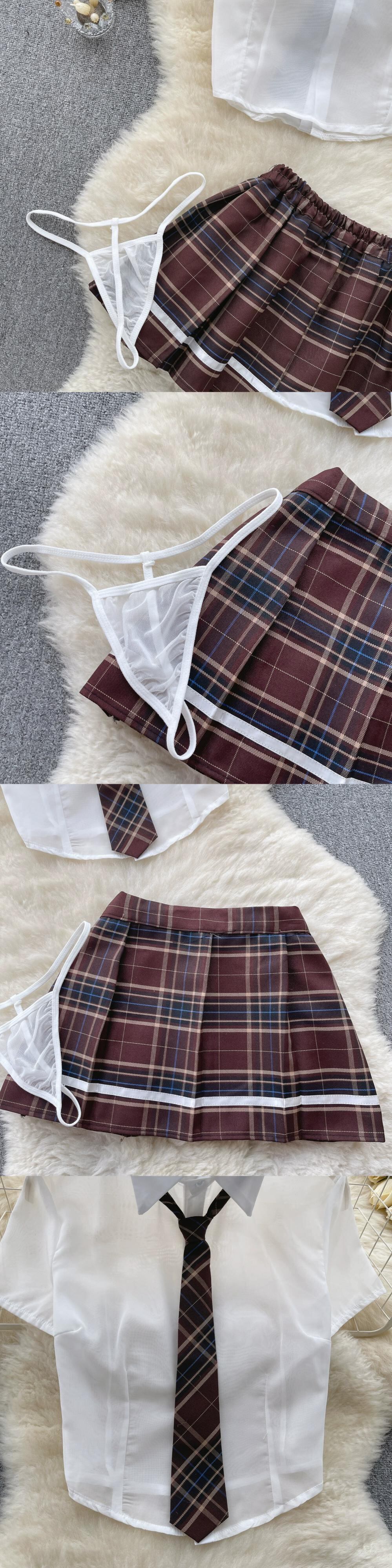 純粋な欲望のカレッジスタイルのセクシーで興味深いユニムスーツJKチェック柄ミニスカート+無地シースルー半袖シャツ ソリッドカラー lyxaj71863229773