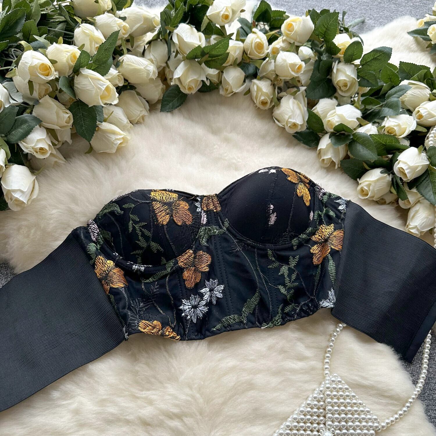 セクシーな純粋な欲望重工業刺繍かぎ針編みチューブトップ女性胸パッドアウターウェアホットガールスリムフィットショートフィッシュボーントップ レッド ピュア lyxaj42059176318