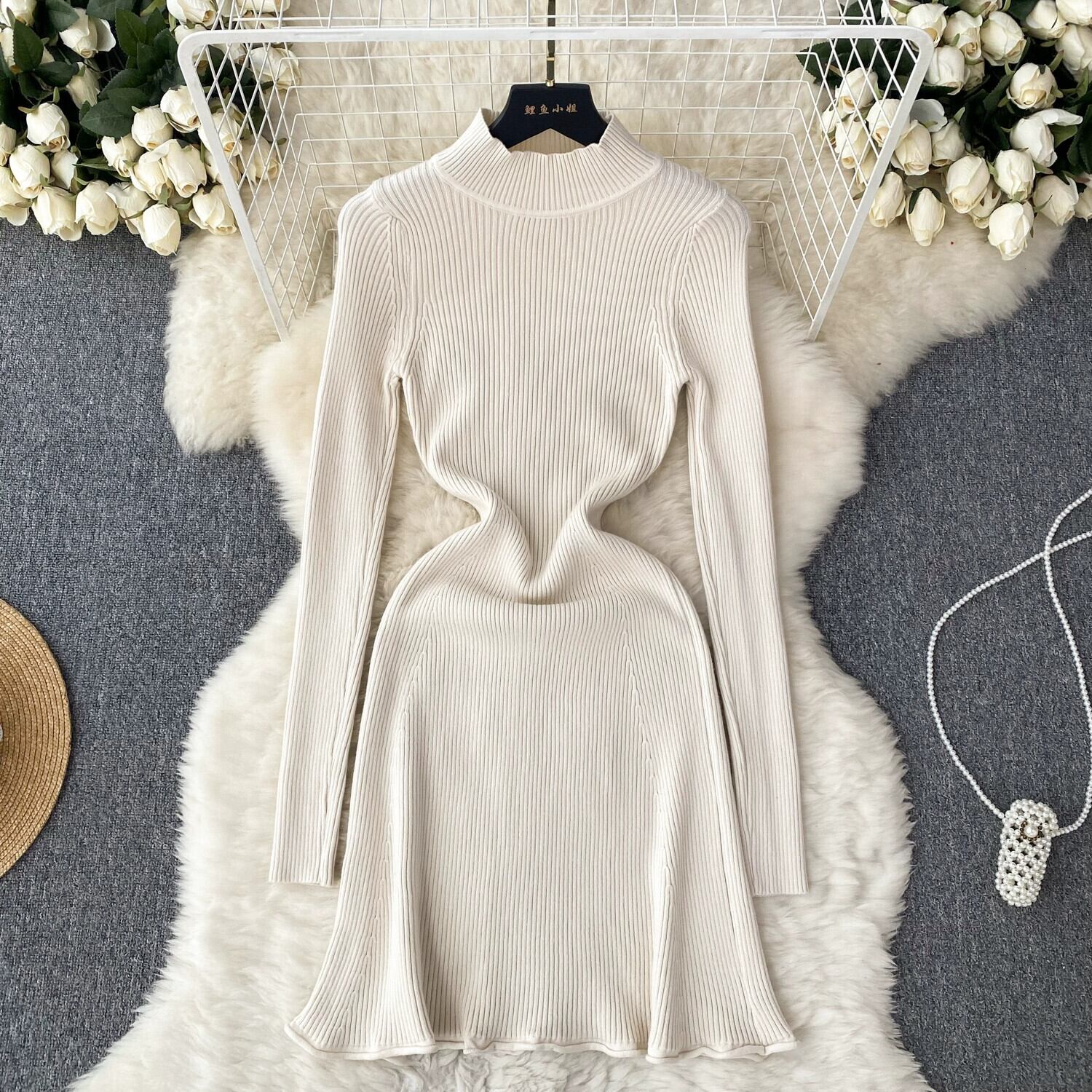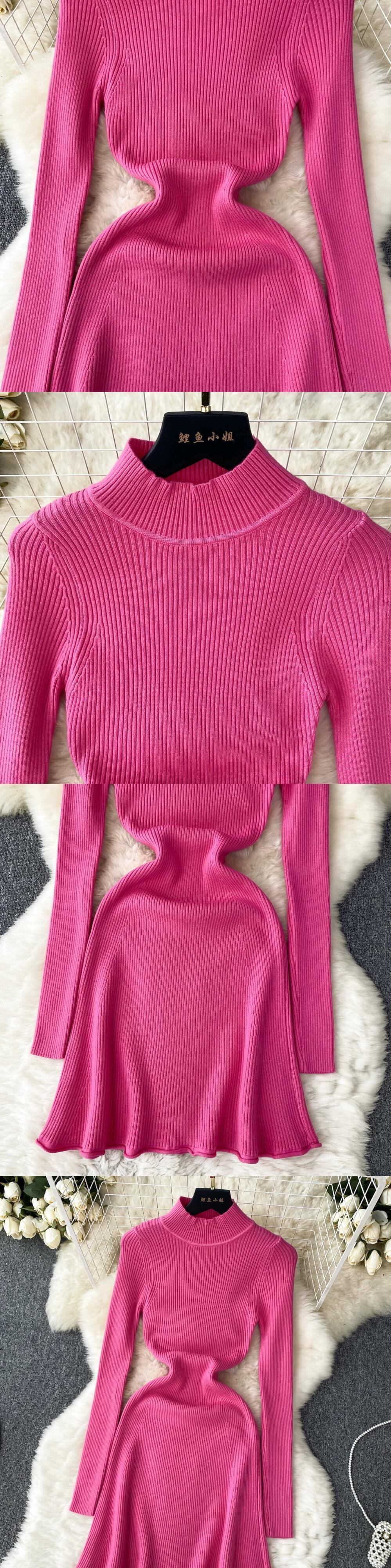 ヨーロッパとアメリカのスタイルのソリッドカラーのニットドレスの女性の秋と冬のハーフハイカラータイトなデザインニッチライト高級ショートスカート オータム 秋物 ウィンター 冬物 ヨーロピアン lyxaj16189900017