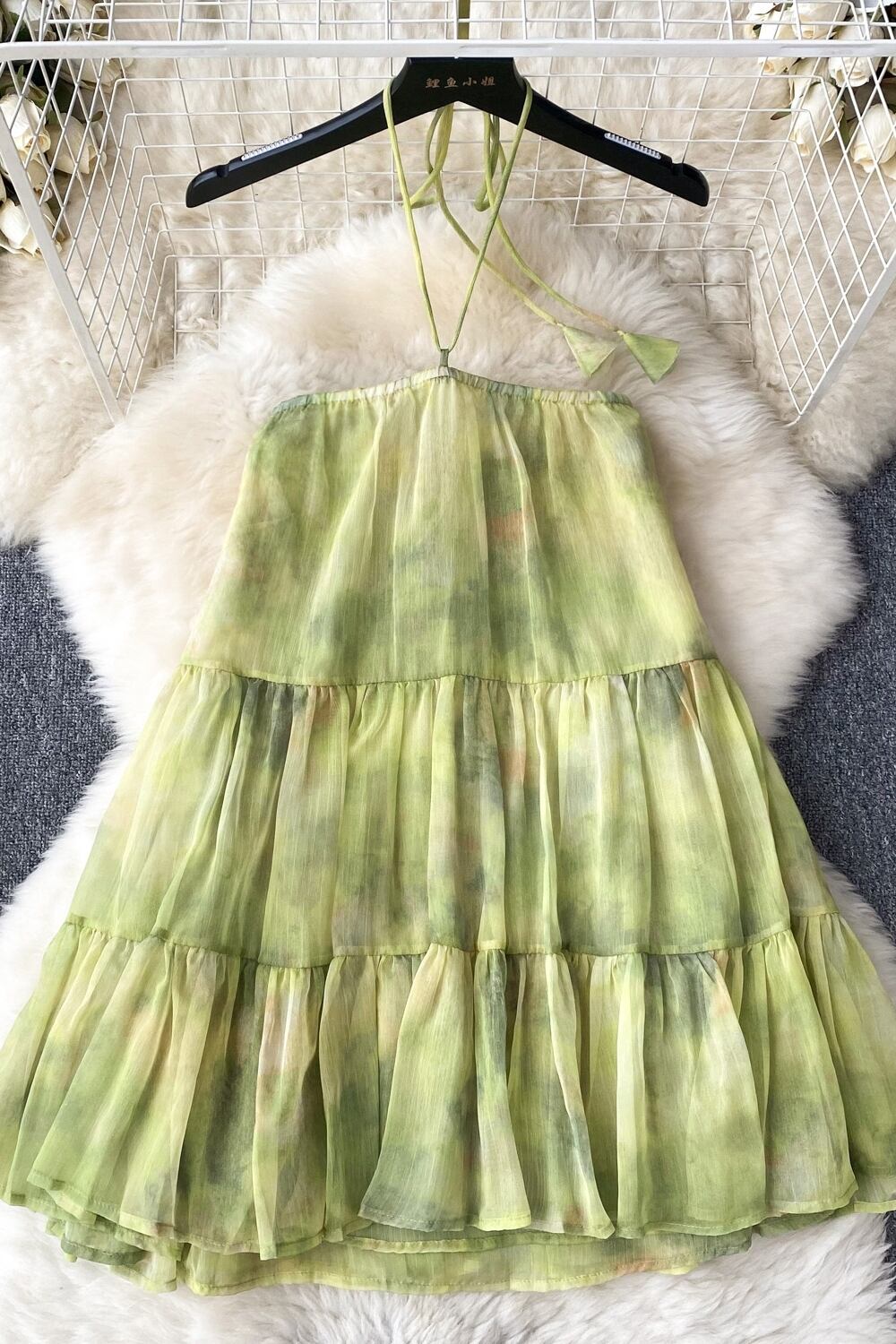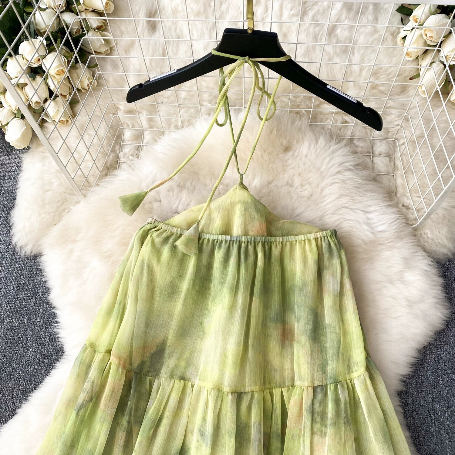 純粋な欲望のホリデースタイルシフォンホルターネック汚れプリントドレス女性の夏のフランスのハイエンドルーズベビードールスカート サマー 夏物 lyxaj93300796752
