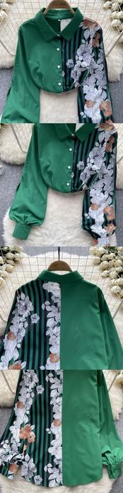 秋のヨーロッパとアメリカ風の高級長袖シャツの女性、プリントスプライシング、ゆったりとしたデザイン、ニッチな気質、軽い高級トップス ロング オータム 秋物 ヨーロピアン lyxaj24918064811