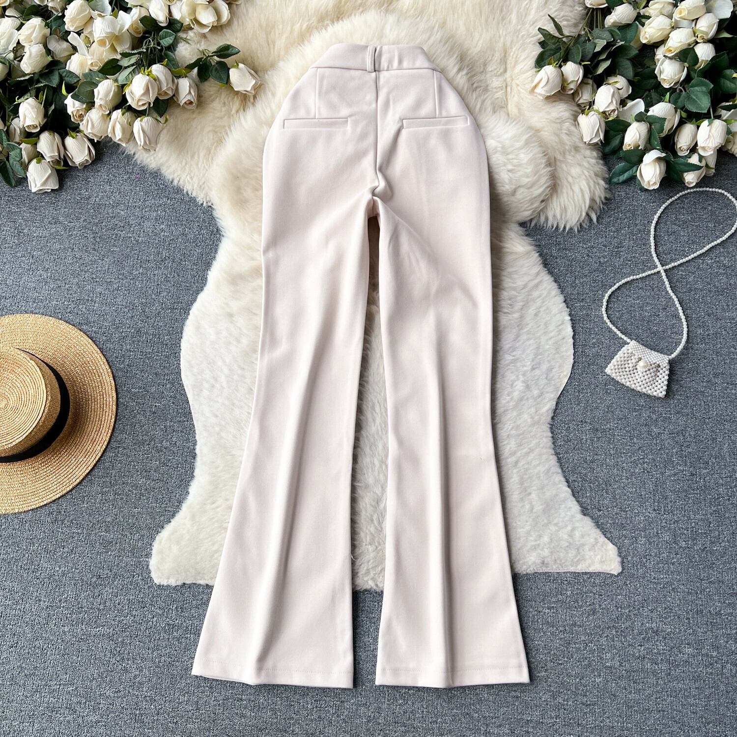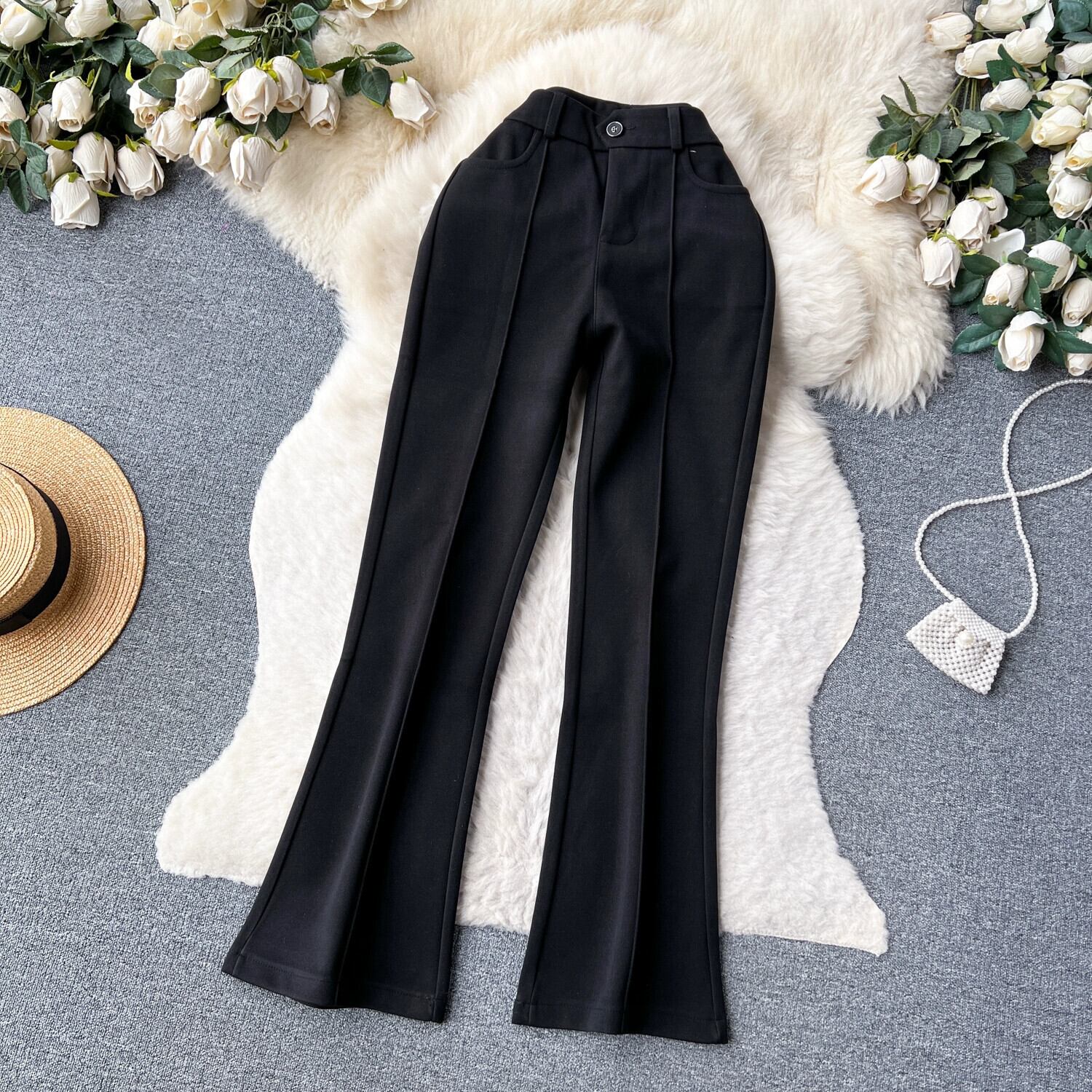 ドレープ若干フレアスーツパンツ女性秋 2023 新しいハイウエスト痩身シンプルな多目的フロアレングスカジュアルパンツ レッド オータム 秋物 lyxaj48807877923