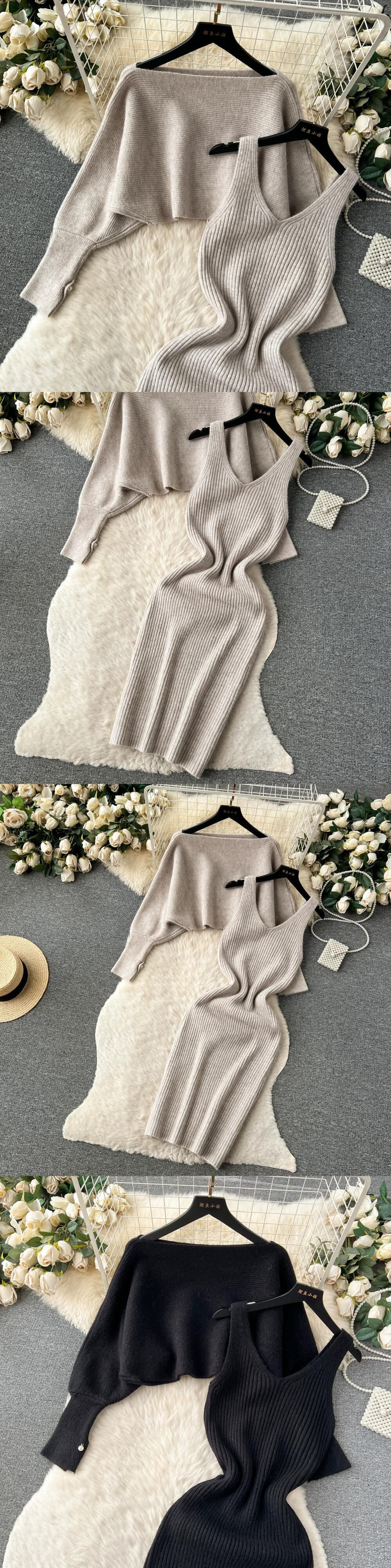 今年のトレンディで美しいスーツは、バットスリーブのセーター ジャケット、用途の広いショート ベスト ドレス、エレガントな 2 ピース セットです。 lyxaj30284232707