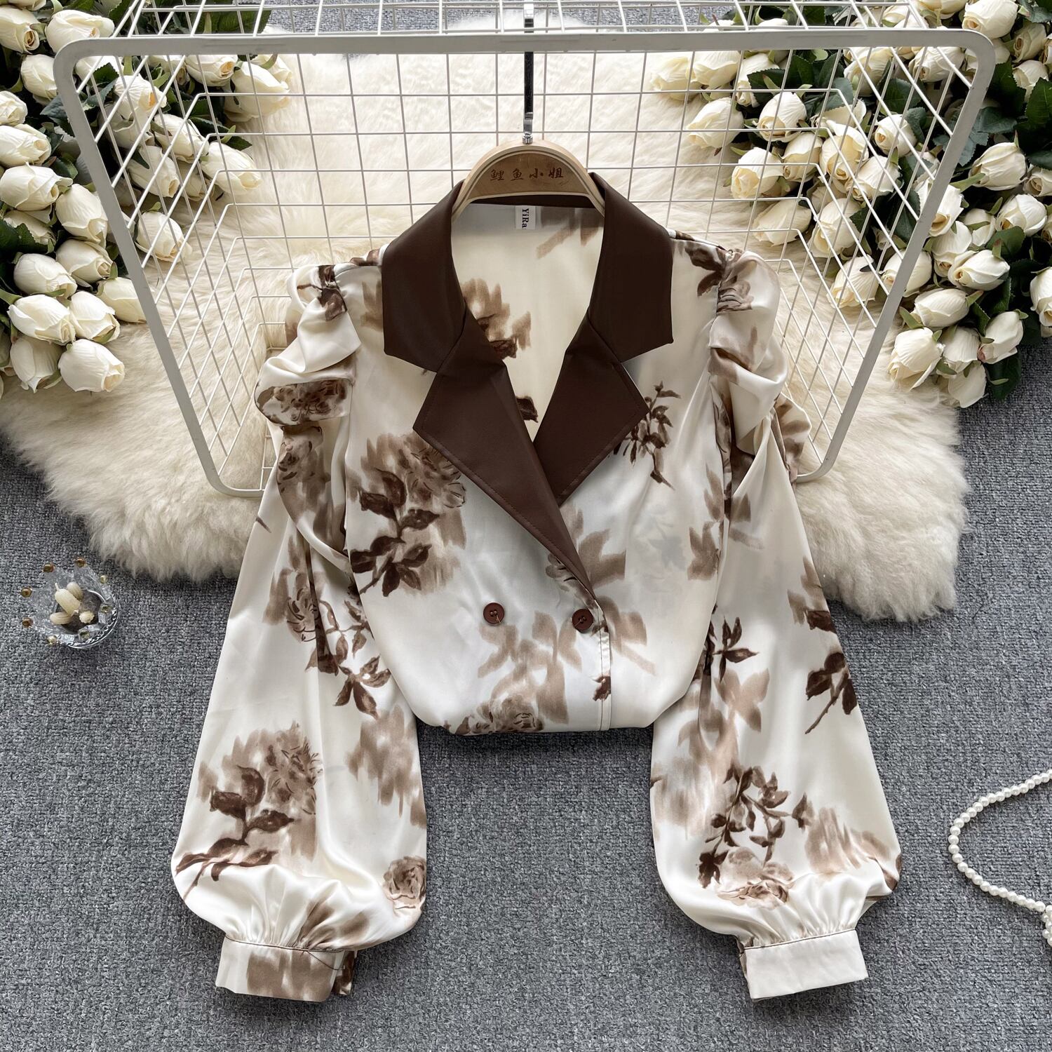 メイラード ドレッシング シャツ 2023 女性のレトロなプリント気質スーツ襟シャツ多用途長袖トップ ロング lyxaj23878809049