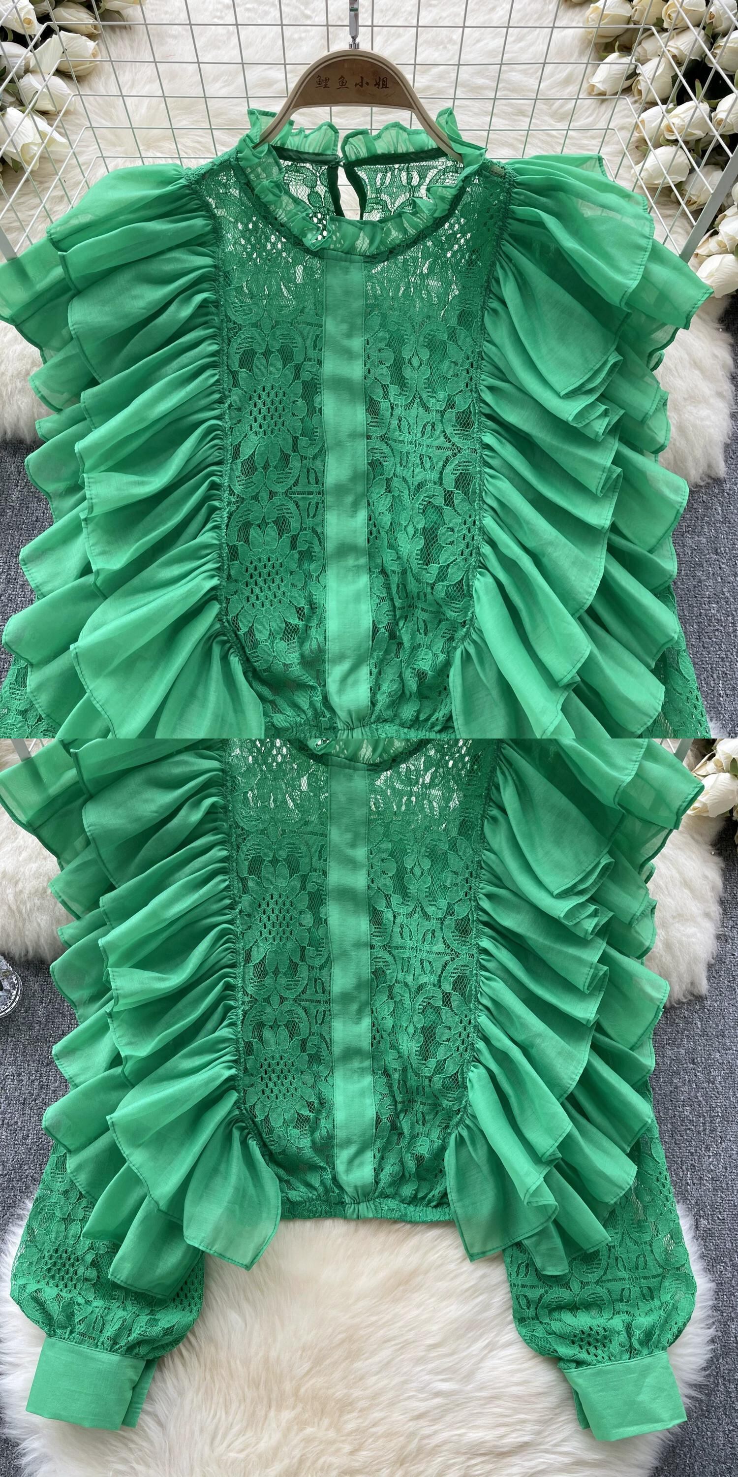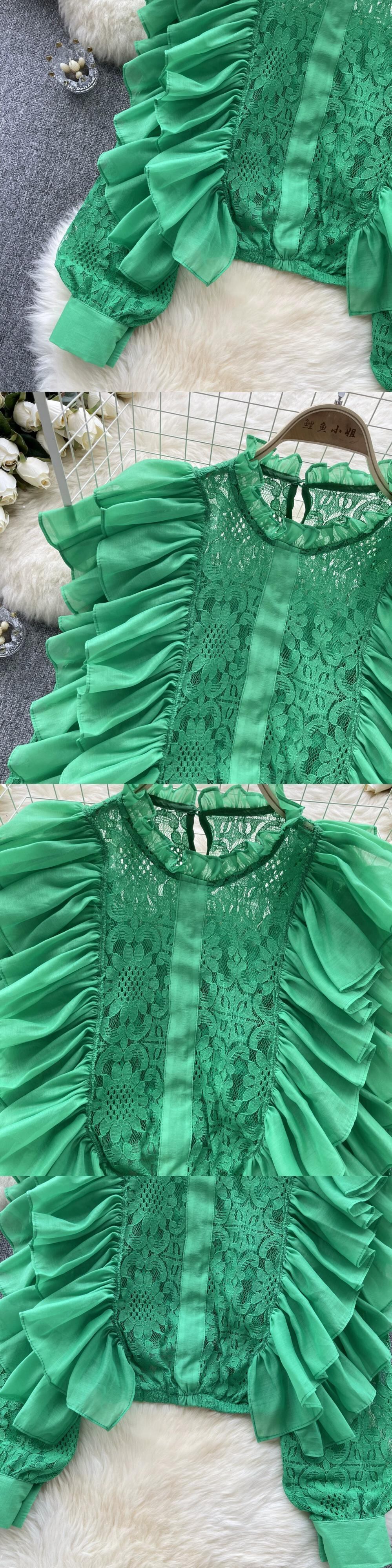 今年の人気の2023トップスレディース秋の新デザイン二層フリル年齢を軽減する万能ショートレースシャツ レッド ラッフル オータム 秋物 lyxaj58708573594