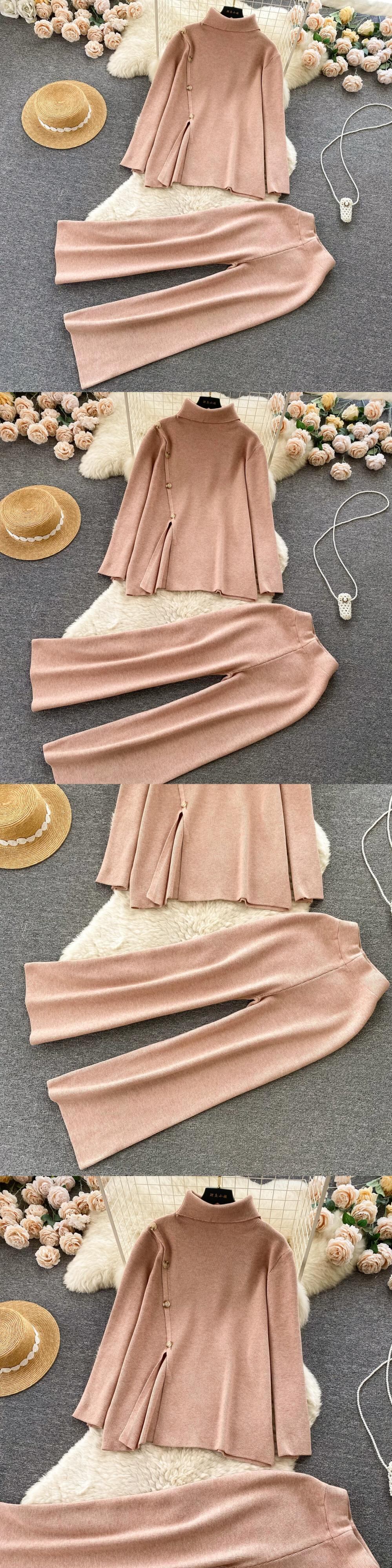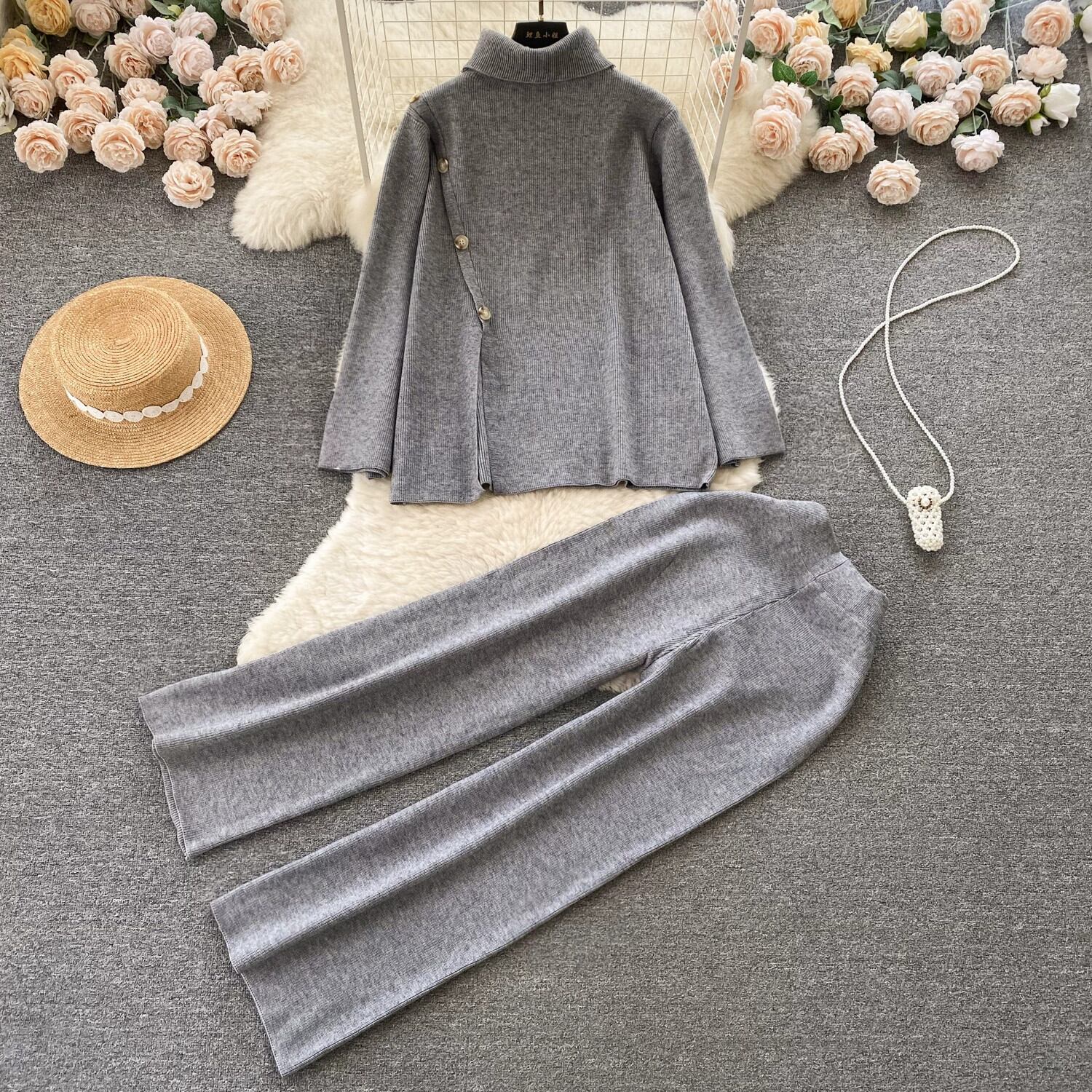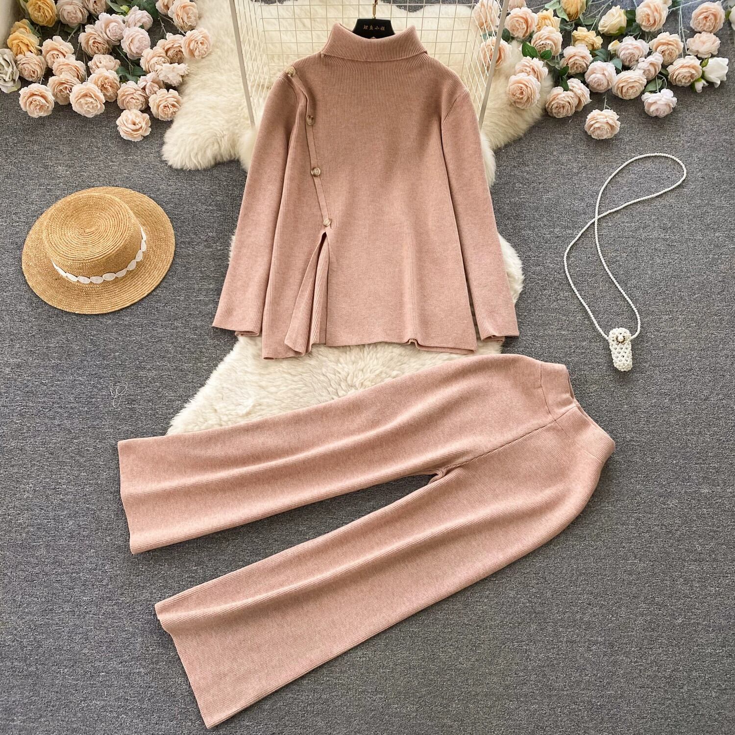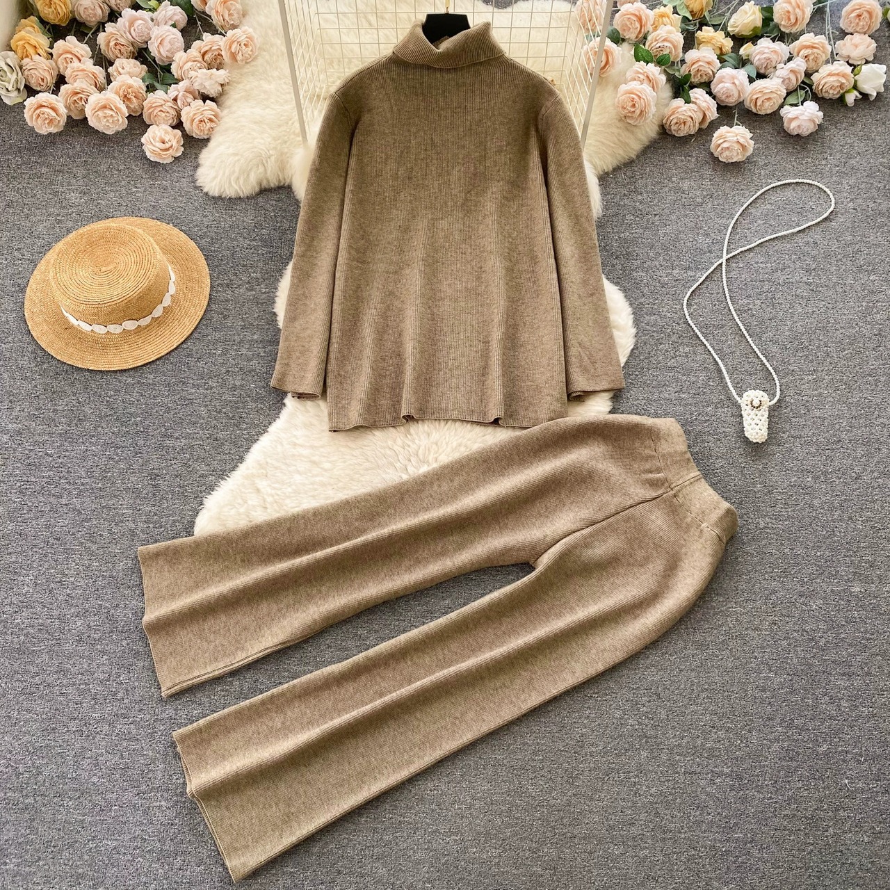 フランスの軽い高級レトロなハイエンドニットスーツの女性の秋と冬のルーズタートルネックトップ+ハイウエストスリムパンツ オータム 秋物 ウィンター 冬物 lyxaj13080521357
