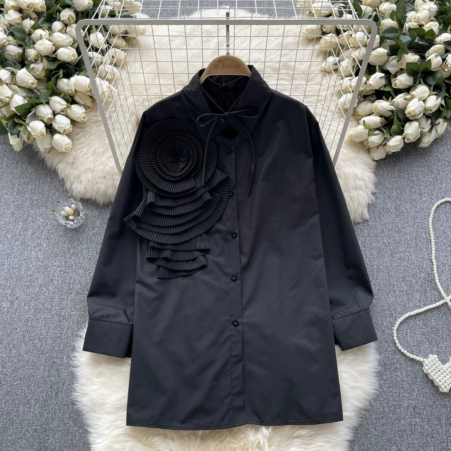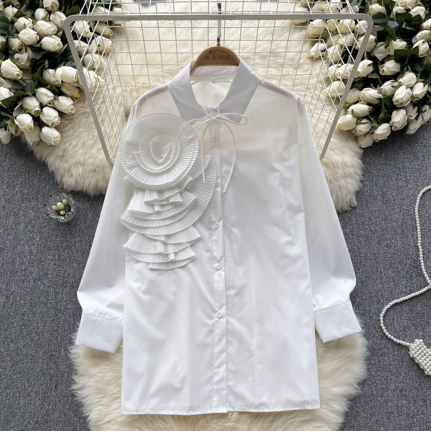 フレンチライトラグジュアリーレディスタイルハイエンド長袖シャツ女性秋冬立体フラワーデザインニッチスーパーフェアリートップ ロング オータム 秋物 ウィンター 冬物 lyxaj4129040415