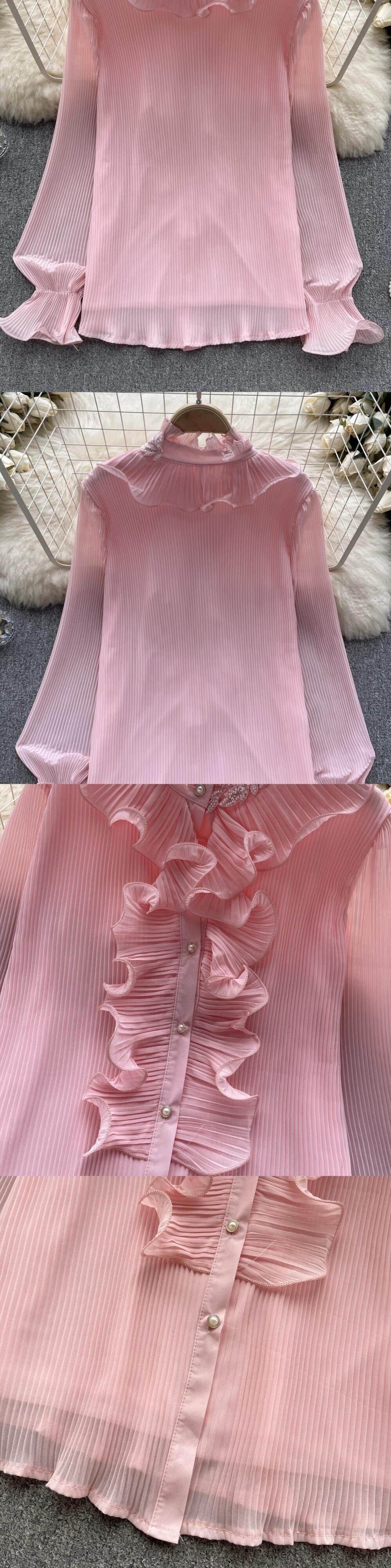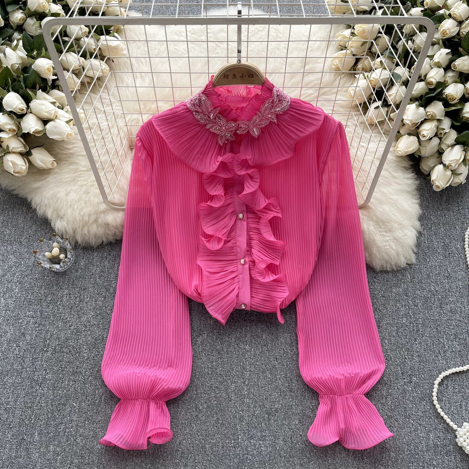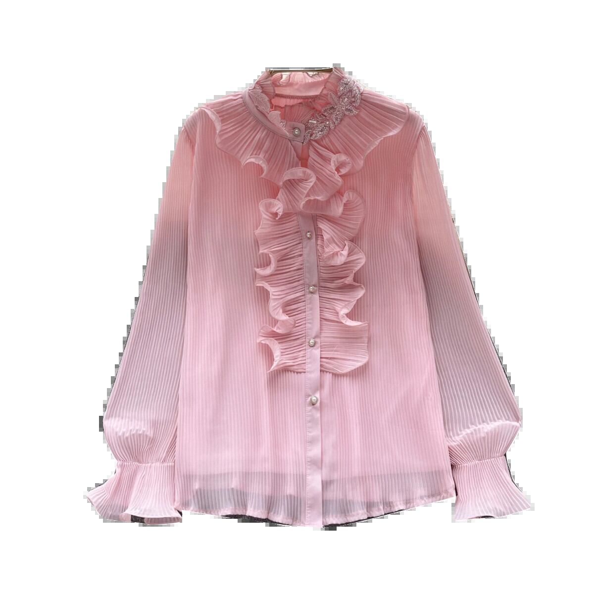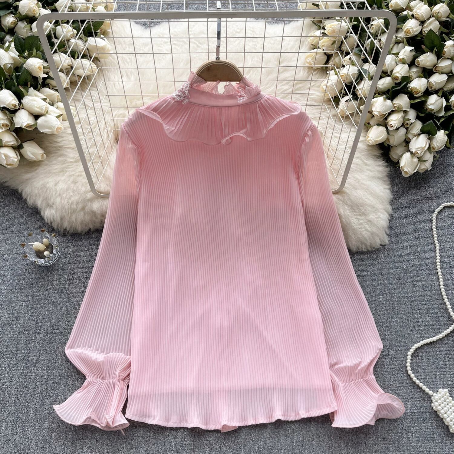 レトロレディスタイル花びらスリーブシャツ女性の秋プリーツ菌ニッチスーパーフェアリーライト高級トップ オータム 秋物 lyxaj99862611861