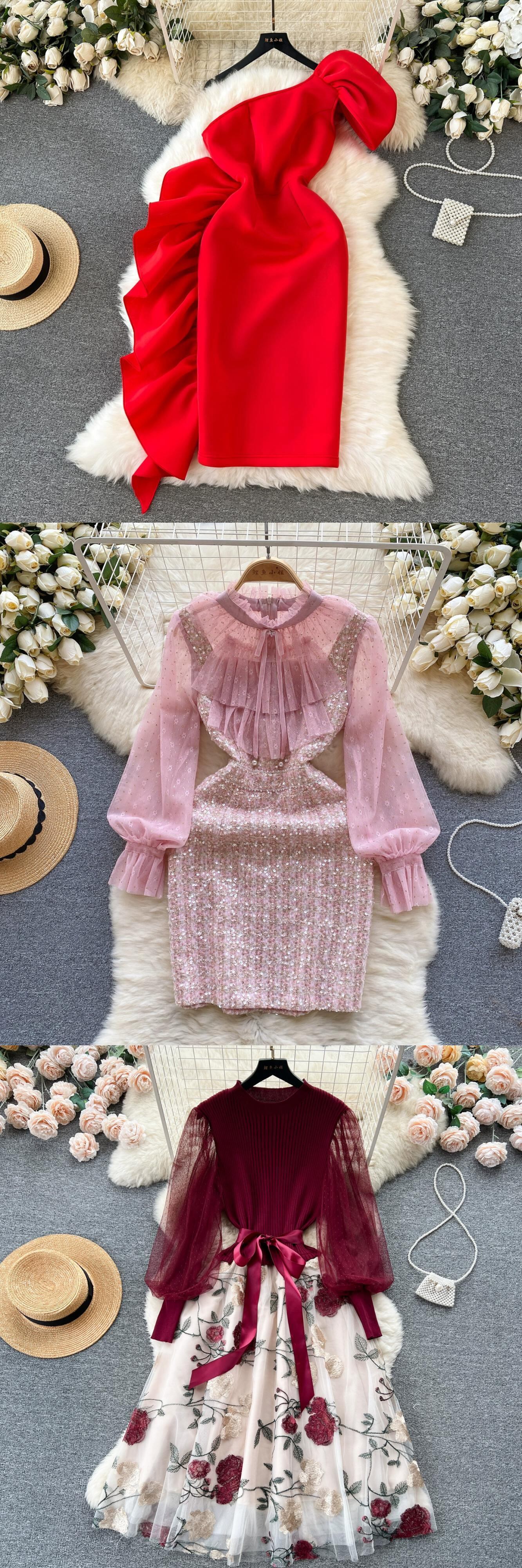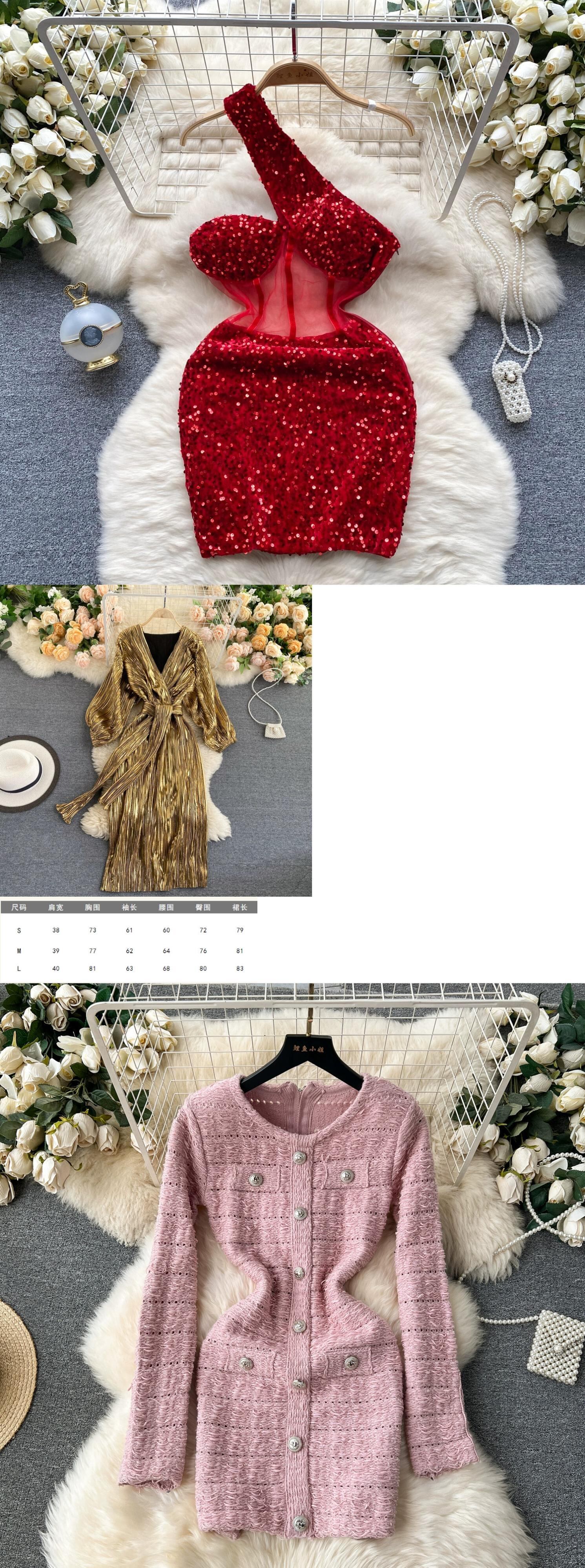 優しい風ラウンドネック長袖メタルバックルスリムドレス女性の秋と冬の小さな香りのスタイルとタイトなヒップ抱きニットスカート ロング オータム 秋物 ウィンター 冬物 Oネック lyxaj36282035458