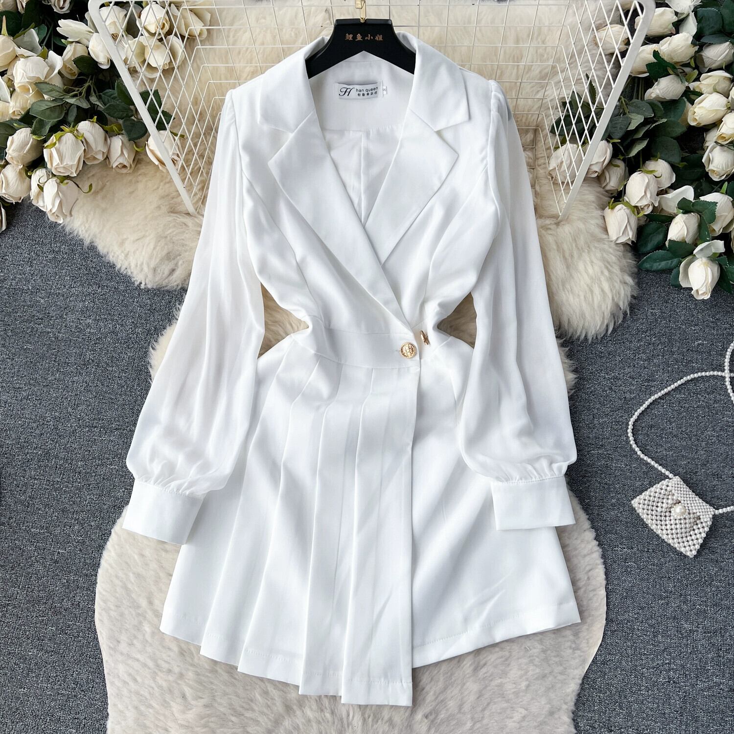 軽くて大人なスタイルのウエストを締めるスーツドレスの女性、春と秋の新しいスタイル、軽くて豪華な気質のデザイン、痩身、ハイエンドでエレガントなショートスカート スプリング 春物 オータム 秋物 lyxaj40835049891