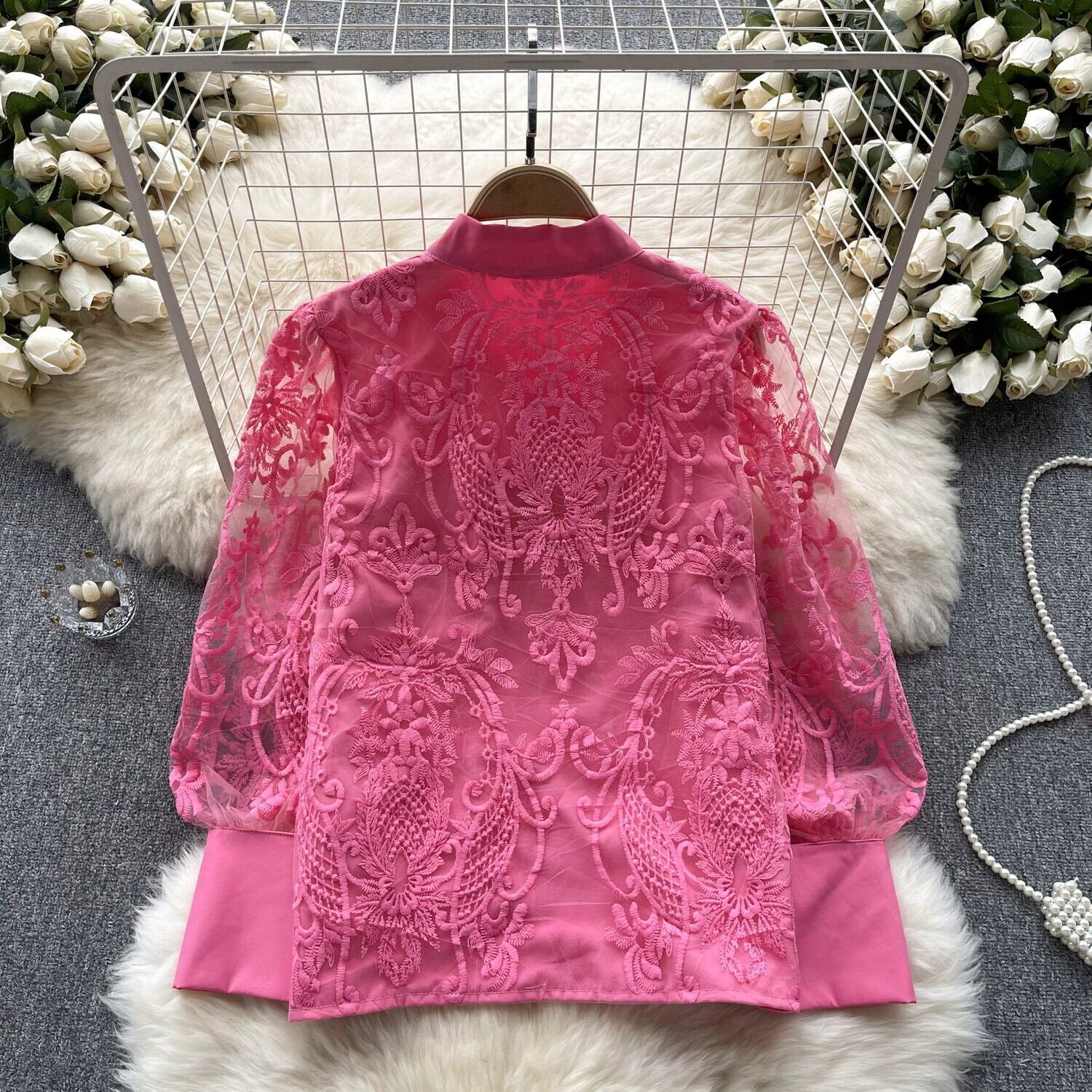 フレンチレトロスタイルハイエンドパフスリーブシャツ女性秋メッシュ刺繍デザインライト高級レディライクトップ オータム 秋物 lyxaj90660751687