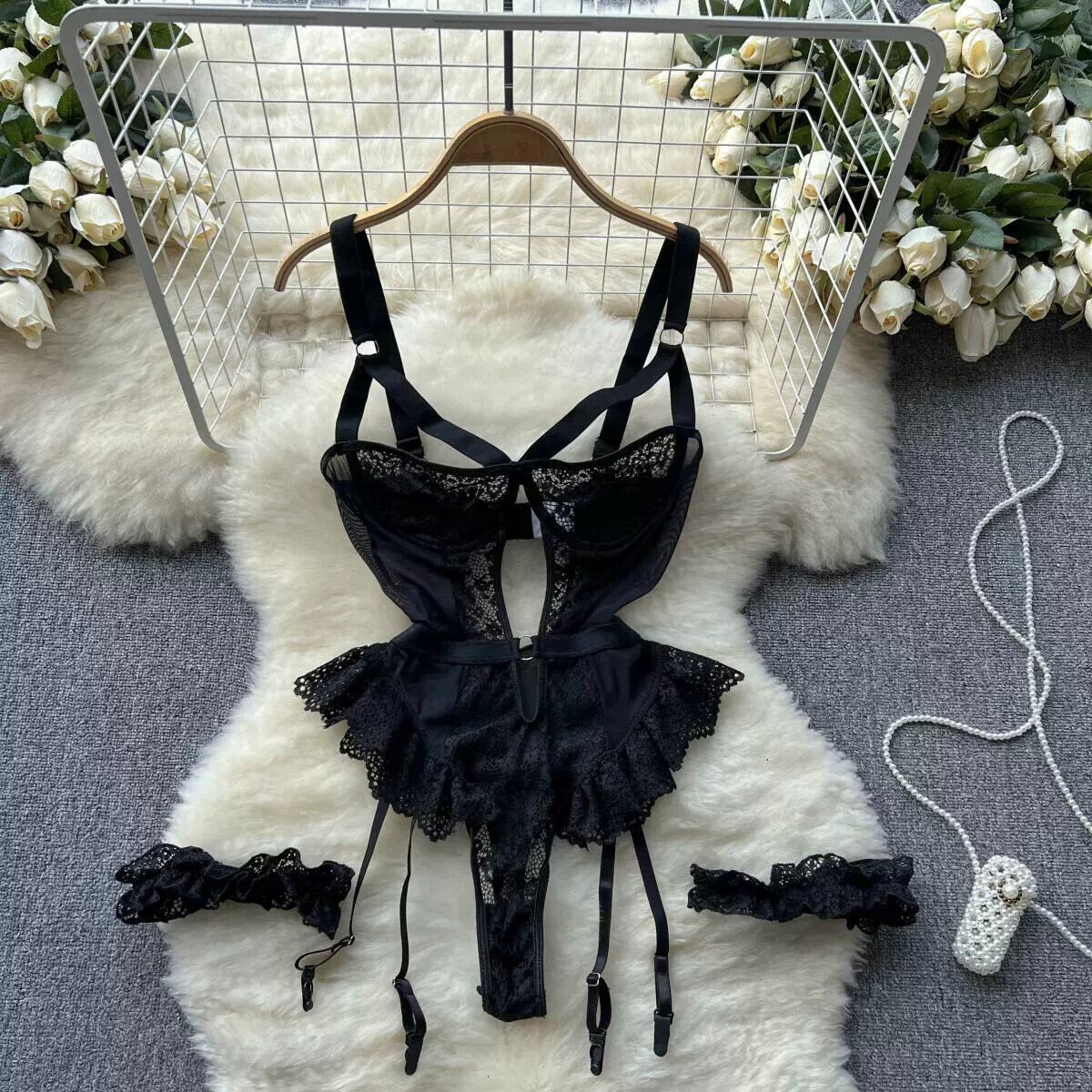 純粋な欲望ネクタイセクシーなレースレースガーターストッキングスリットシースルーサスペンダーローカット中空ハイカットジャンプスーツ タイツ ソックス lyxaj73219858307