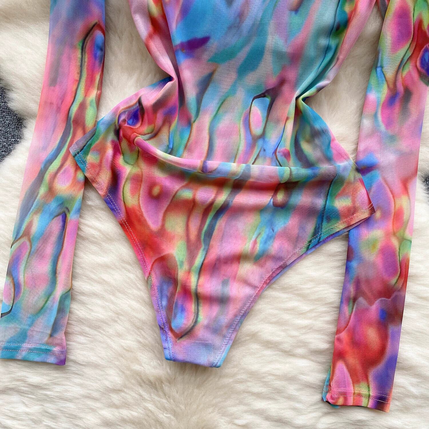 ヨーロッパとアメリカの純粋な欲望のネクタイスタイルの絞り染めワンピース女性の秋のハーフハイカラーのタイトなメッシュデザインがストリートトップスをトレンディにします オータム 秋物 ピュア ヨーロピアン lyxaj67124915686