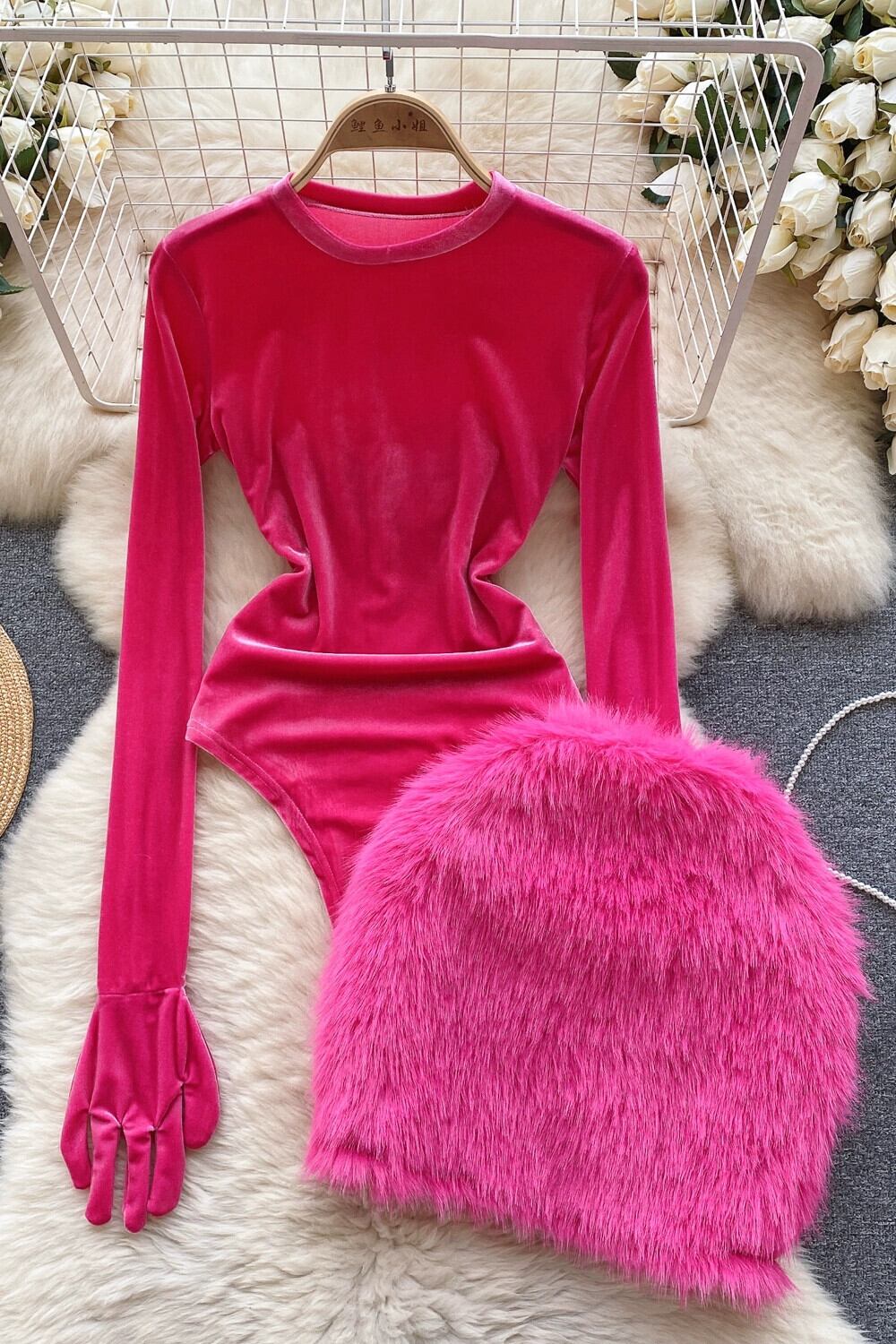 ヨーロッパとアメリカのスタイルのハイエンドの無地のタイトなベルベットのジャンプスーツ + 豪華なスカートのスーツの女性の秋と冬の オータム 秋物 ウィンター 冬物 ソリッドカラー ヨーロピアン lyxaj70969664802
