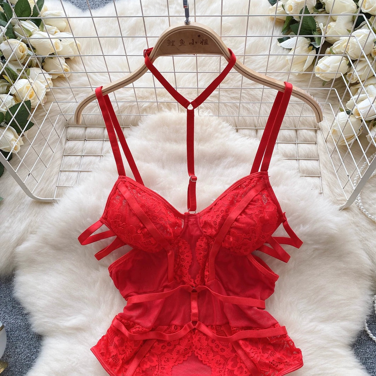 ヨーロッパとアメリカの純粋な欲望ネクタイ中空ホルターネックレースステッチメッシュジャンプスーツフェミニンセクシーなインナーサスペンダートップ ピュア ヨーロピアン lyxaj58422296860