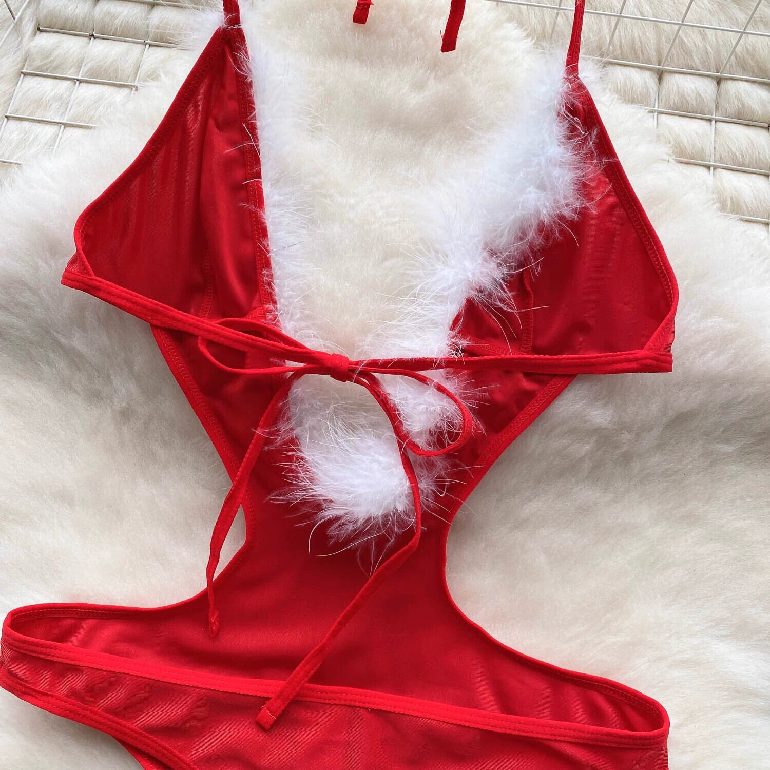ヨーロッパとアメリカンスタイルの女性のインクリスマス純粋な欲望ネクタイ毛皮のようなスプライシングホルターネックサスペンダー中空セクシーなスリムフィットジャンプスーツ ピュア ヨーロピアン lyxaj68164602131