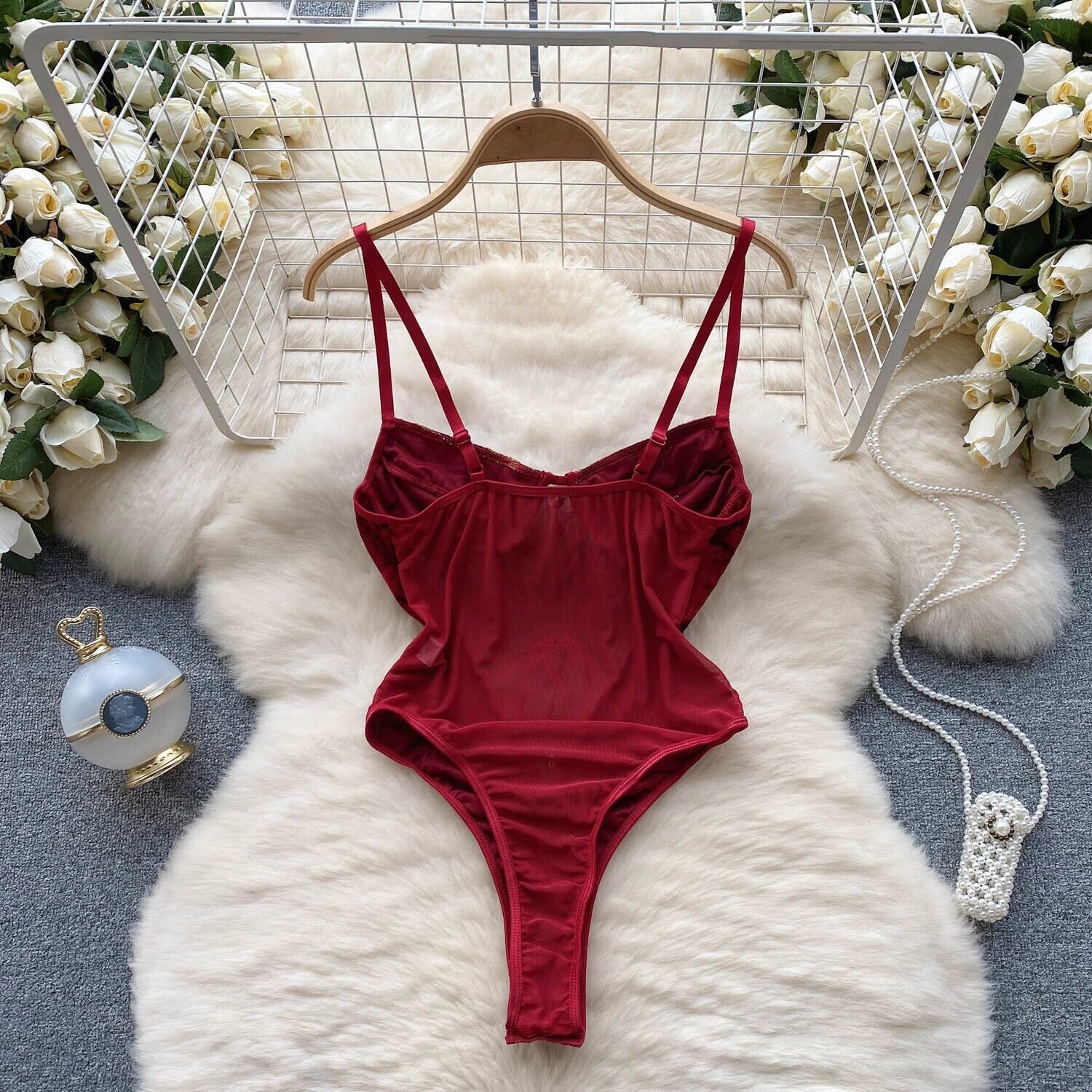 セクシーなレース刺繍ジャンプスーツ女性インターネット有名人インインナーサスペンダートップヨーロッパとアメリカンスタイルのスリムベルベットジャンプスーツ レッド ヨーロピアン lyxaj99921427980