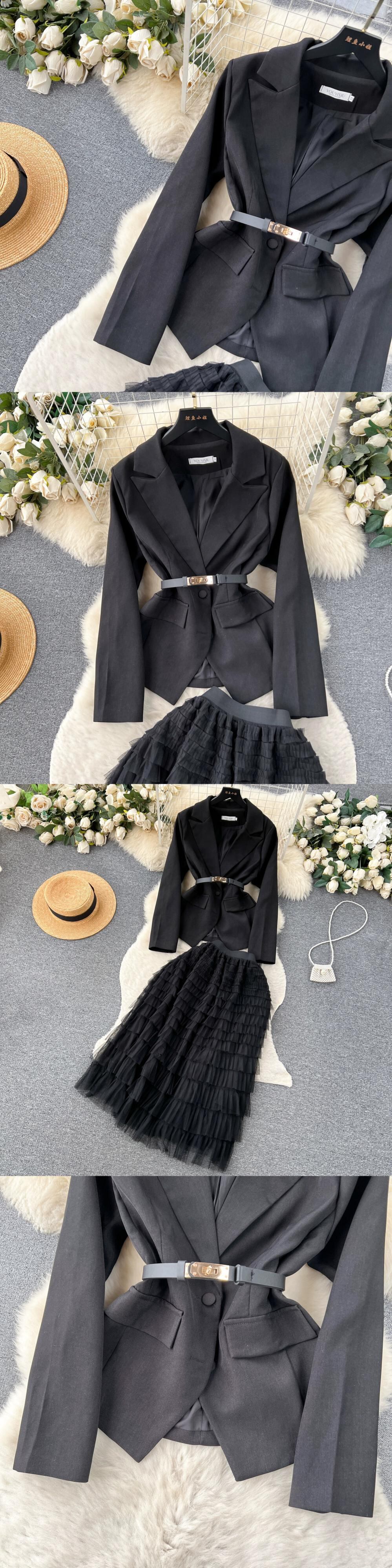 反抗的な義理の娘高級スーツジャケット+ミドル丈ケーキスカートロイヤルシスター気質スーツ秋冬 オータム 秋物 ウィンター 冬物 lyxaj64757096559
