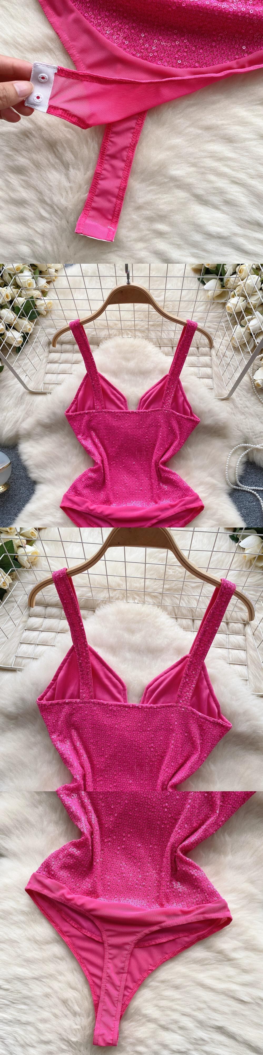 反抗的な娘、ハイエンドのサスペンダーボディスーツの女性、秋と冬のスパンコール付きのVネックのタイトなデザイン、純粋な欲望のタイトップ オータム 秋物 ウィンター 冬物 ピュア lyxaj98053589150