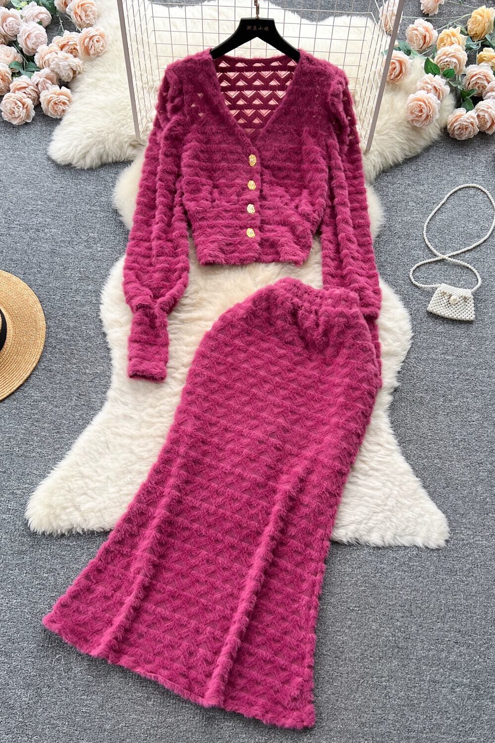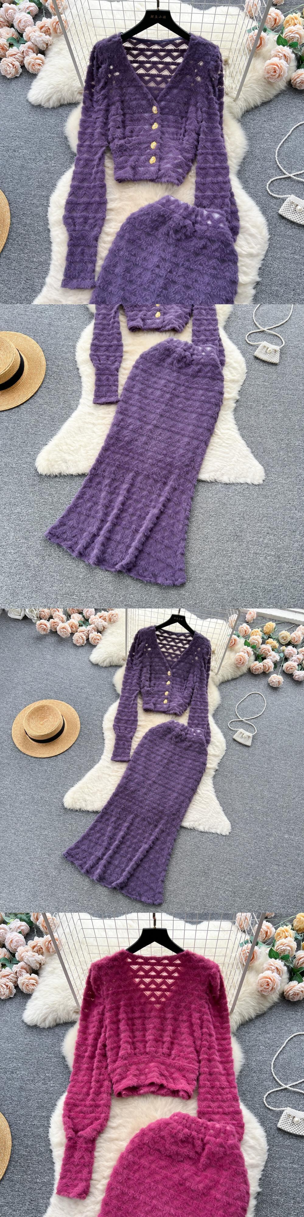 気質ツーピース秋インナーセット女性、ハイエンド純粋な欲望スタイル V ネックレース長袖トップ、スリムフィットヒップスカート ロング オータム 秋物 Vネック ピュア lyxaj34718255416