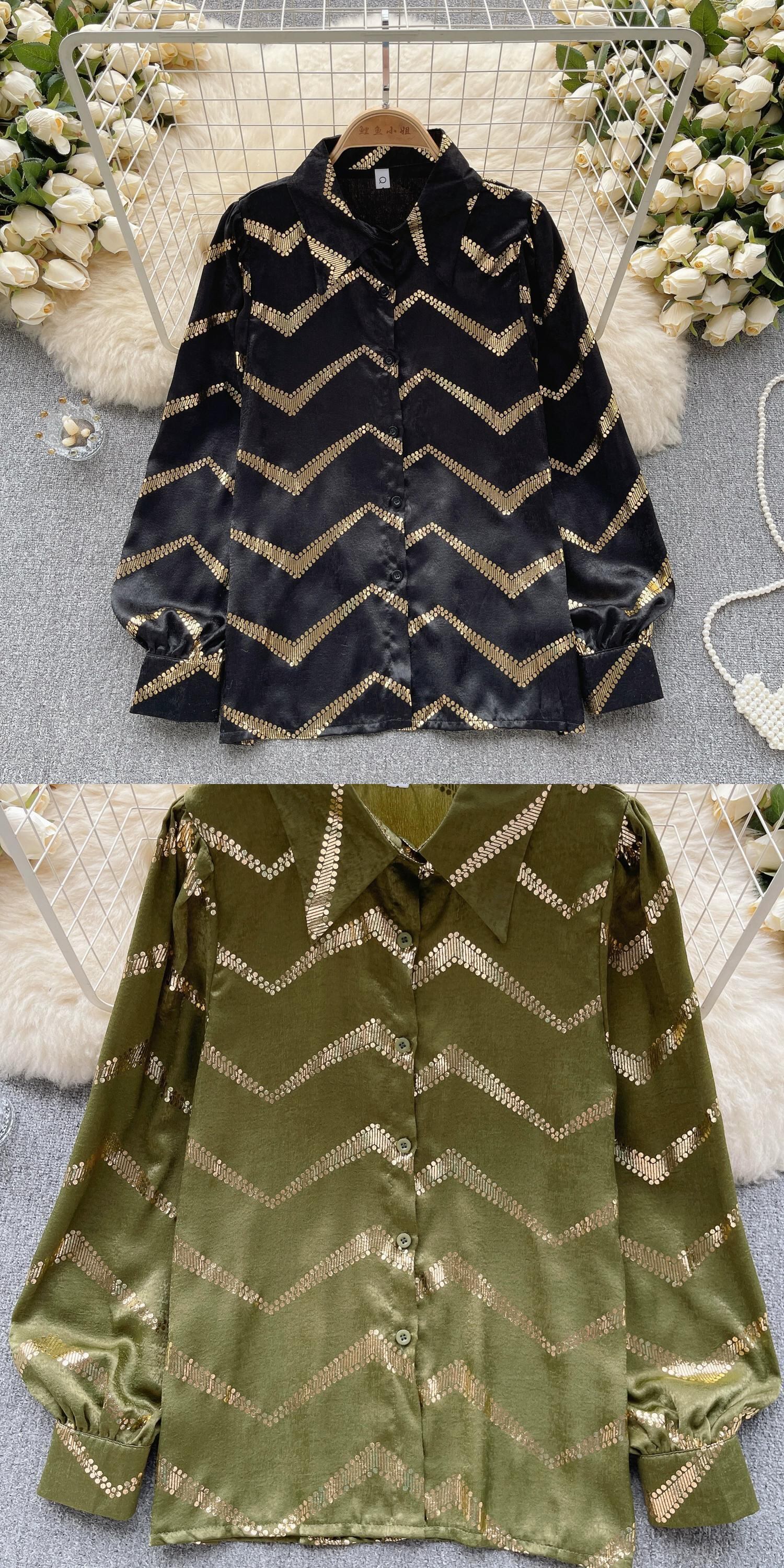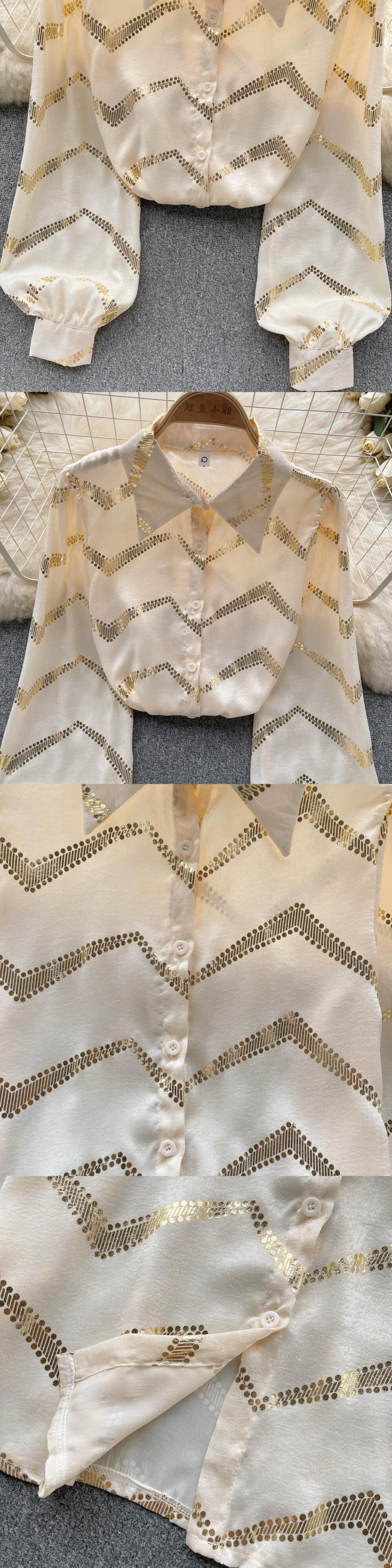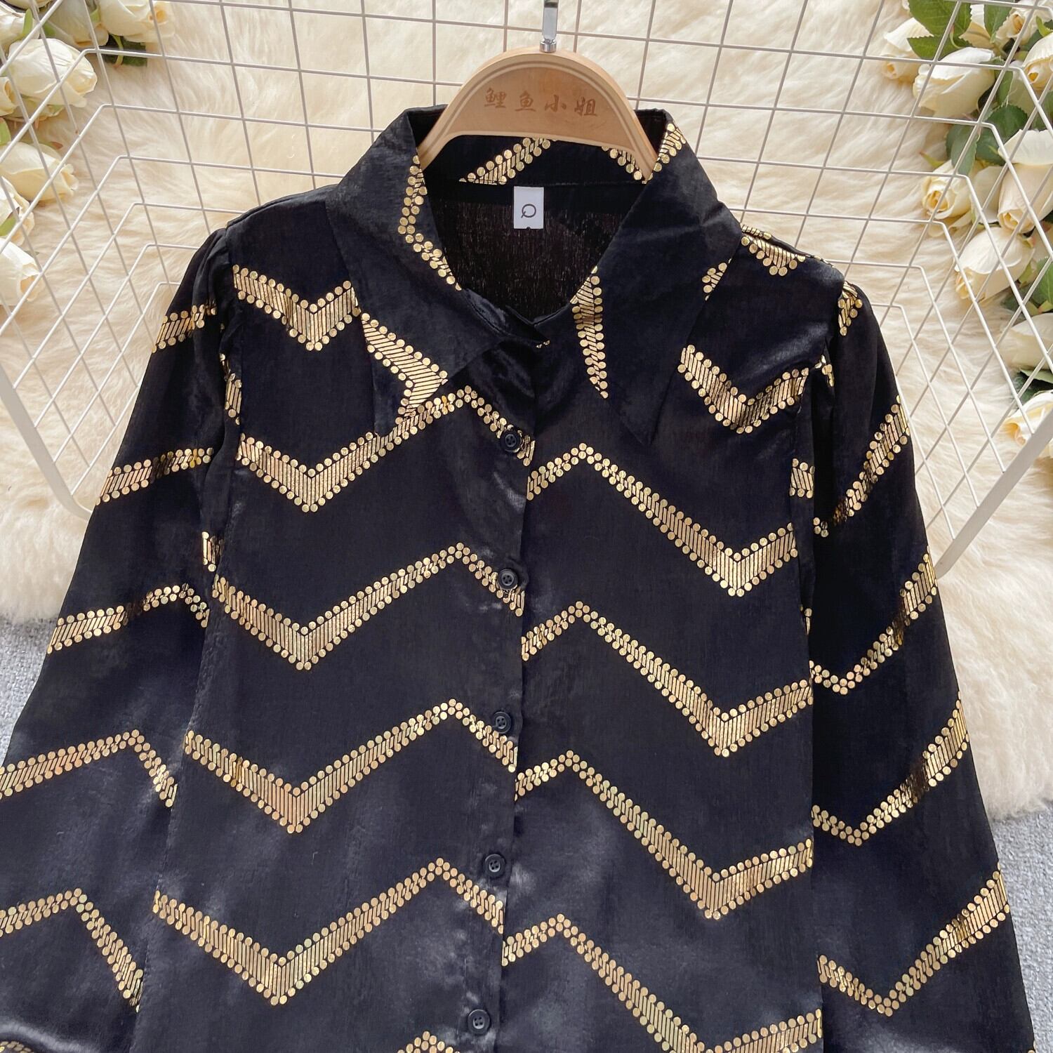 レトロレディスタイルパフスリーブシャツ女性の冬スパンコールルーズニッチシックな軽い豪華な雰囲気のトップ ウィンター 冬物 lyxaj59849535908