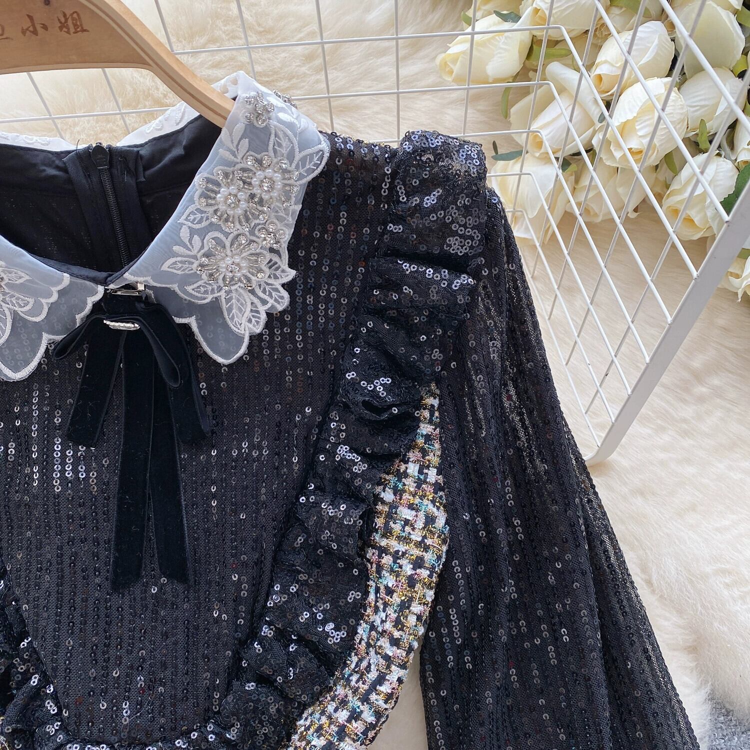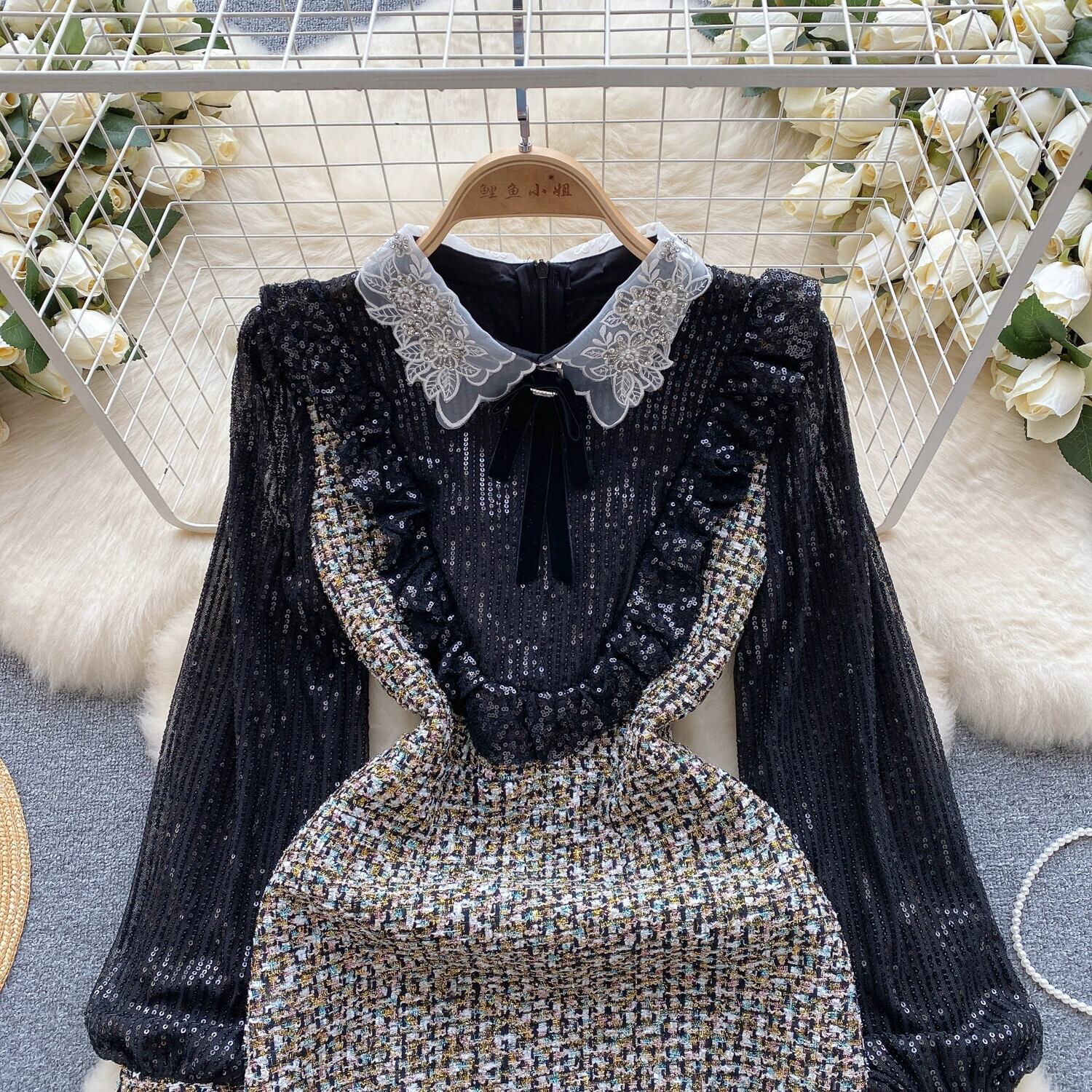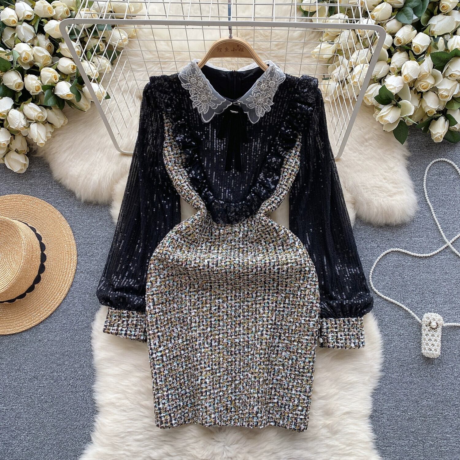 スプライシングされたスパンコールデザインのニッチシックでレディライクなスカートを備えた、秋と冬の軽い豪華なゴールドスタイルのハイエンドドレスの女性 オータム 秋物 ウィンター 冬物 lyxaj43338249875