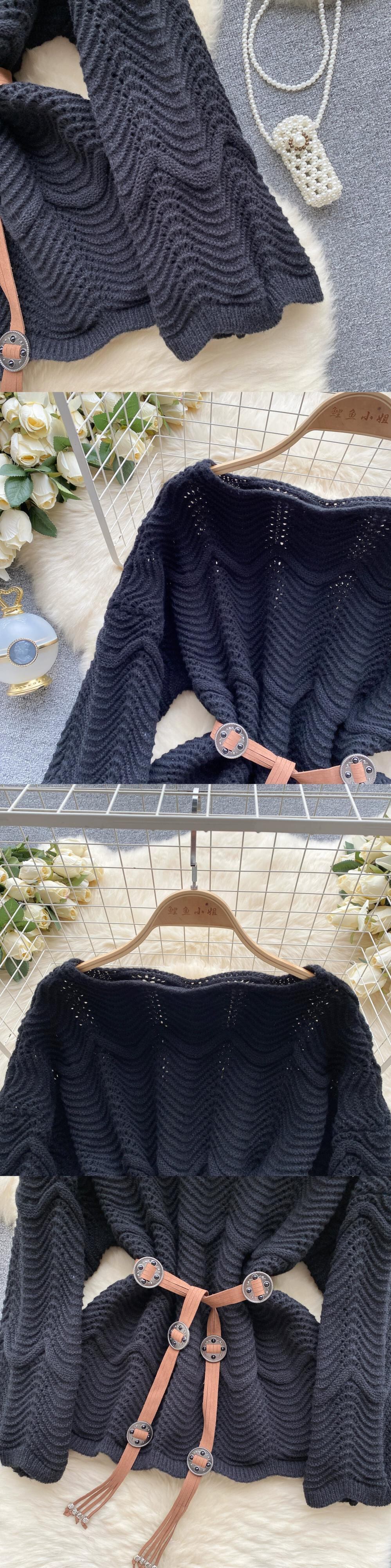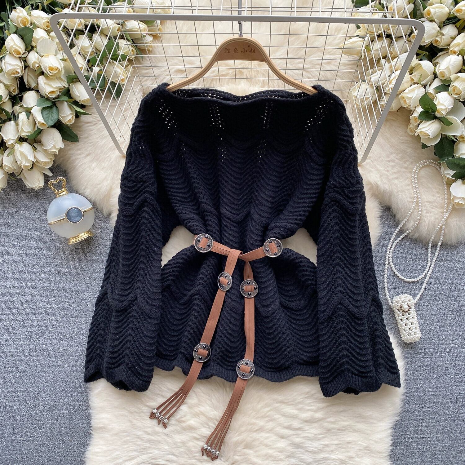 レトロな英国スタイルの高級ニットセーターの女性の秋と冬中空ルーズウエストデザインニッチ気質トップ オータム 秋物 ウィンター 冬物 lyxaj59921042649