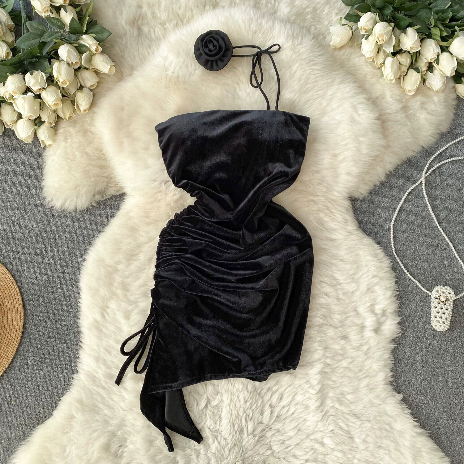 クリスマスパーティーの雰囲気のデートスカートフレンチピュアラストハイエンドストラップレス不規則なヒップハグベルベットドレス lyxaj34978855934