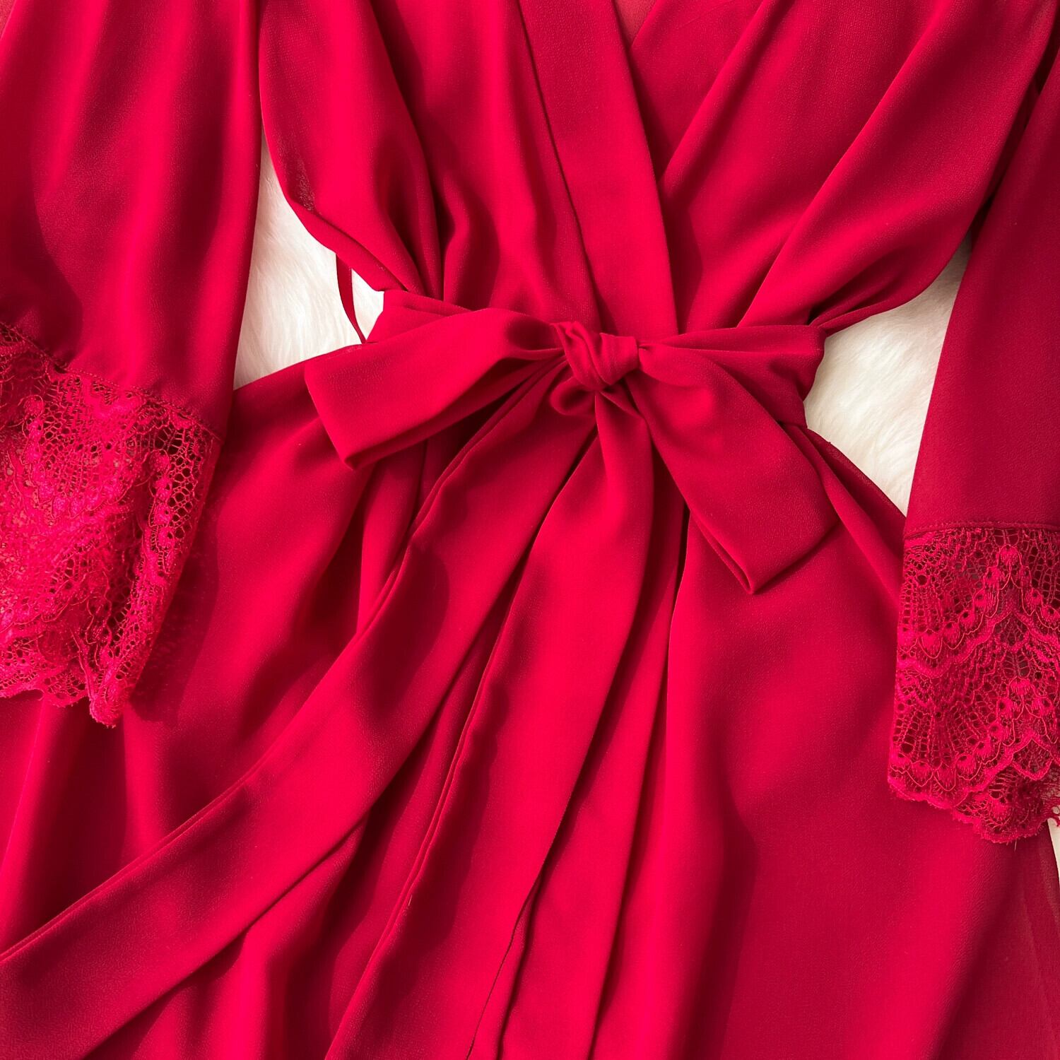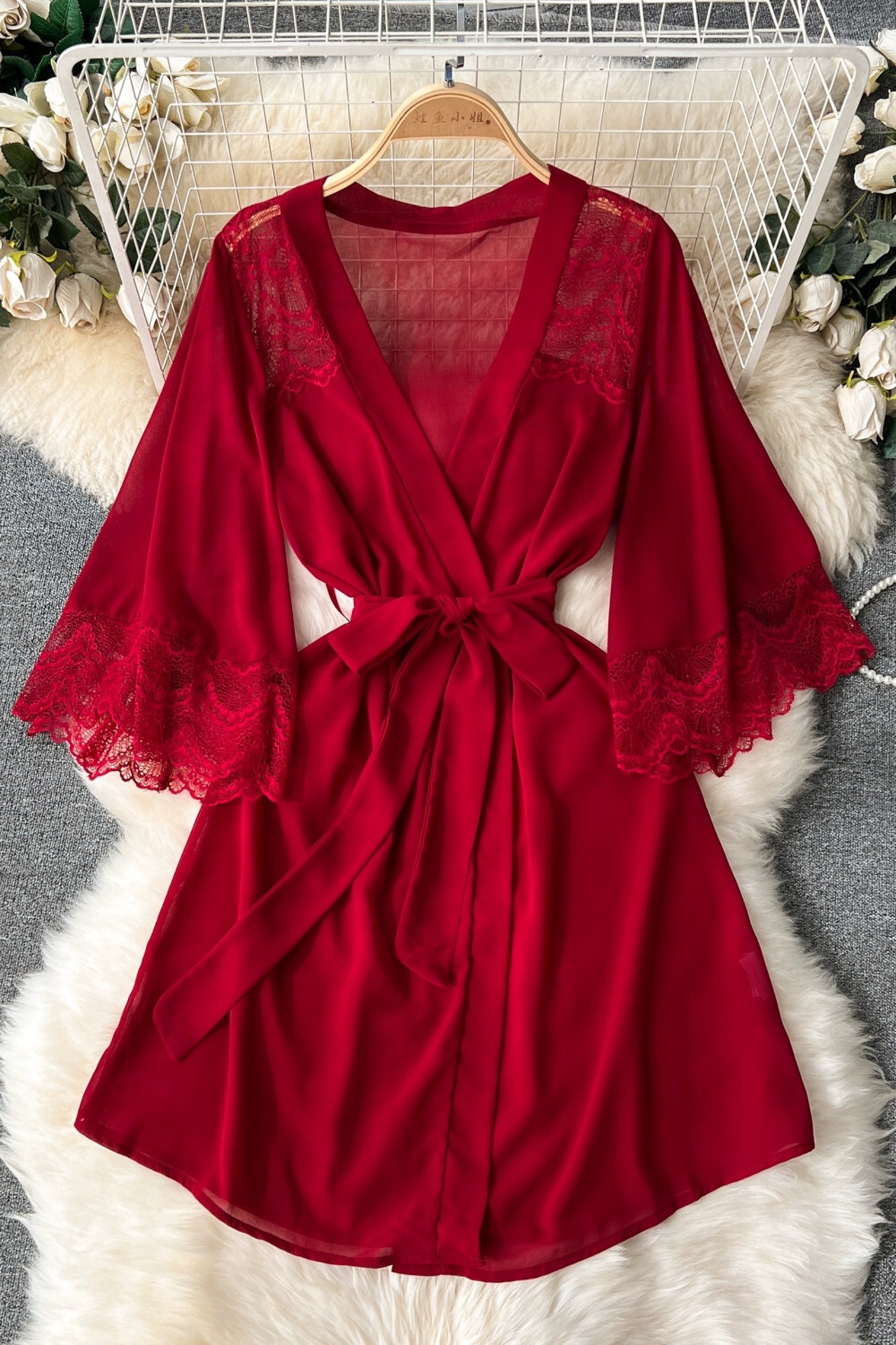 Yujieの高級な気質のパジャマ、女性らしいシースルーのローブ、細いレースのスプライシングストラップ、ウエストを締めるシフォンジャケット、トレンディな lyxaj69590887970