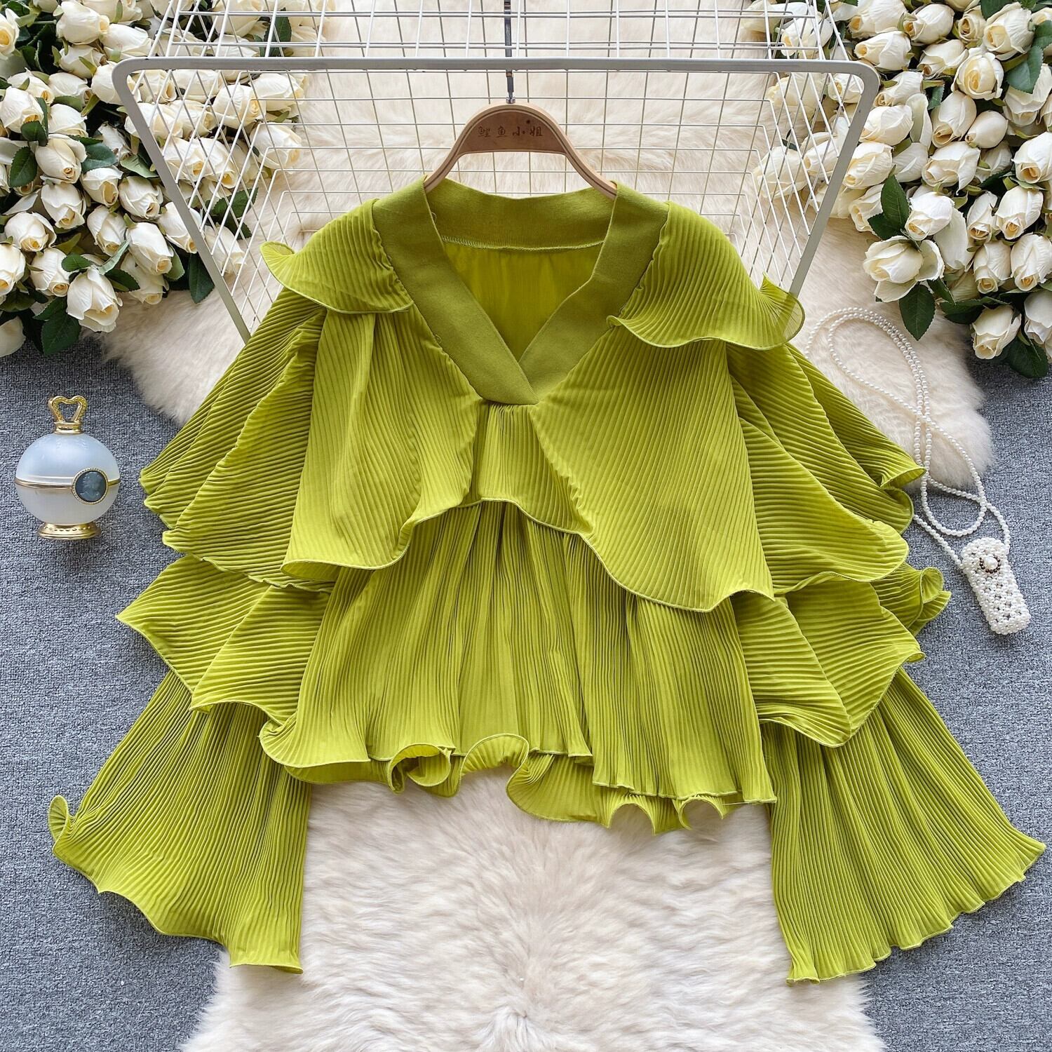 春と秋の新しいヨーロッパとアメリカのインシャツ女性のニッチデザインフリルシックな多目的ルーズフェアリートップ スプリング 春物 オータム 秋物 ヨーロピアン lyxaj61289075858