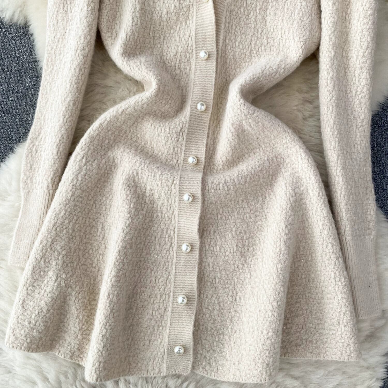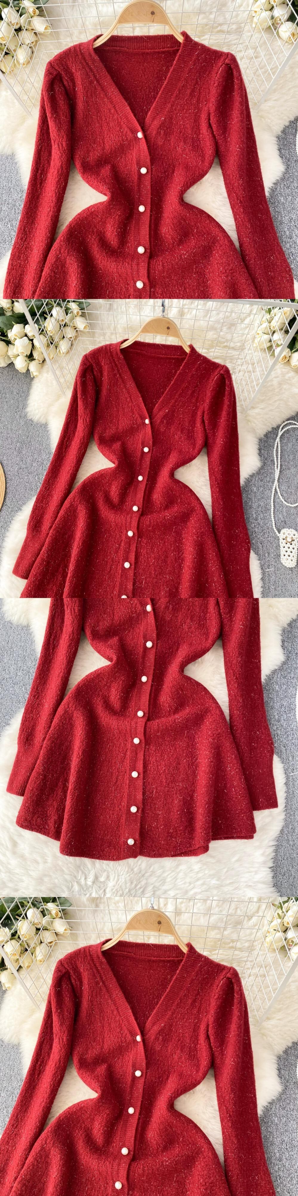 フランスの反逆的なゴールドスタイルの高級ニットドレスの女性の秋と冬のVネックデザインニッチな気質の軽い高級スカート オータム 秋物 ウィンター 冬物 lyxaj30249863714