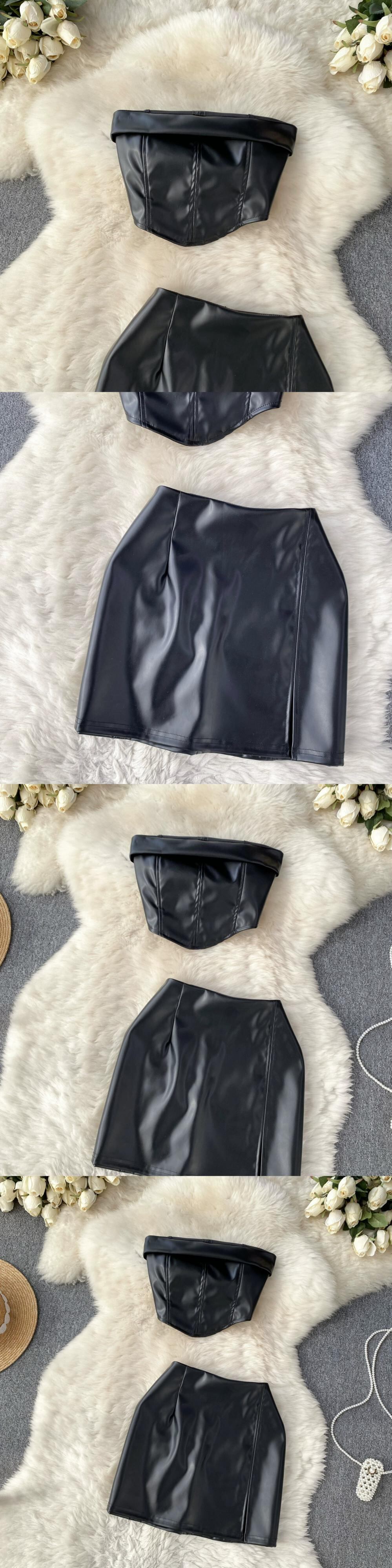 レザースーツ女性ヨーロッパとアメリカのイン衣装純粋な欲望ノースリーブチューブトップベストハイウエストヒップミニスカートスーツ ハイウェスト ピュア ヨーロピアン lyxaj65764048880