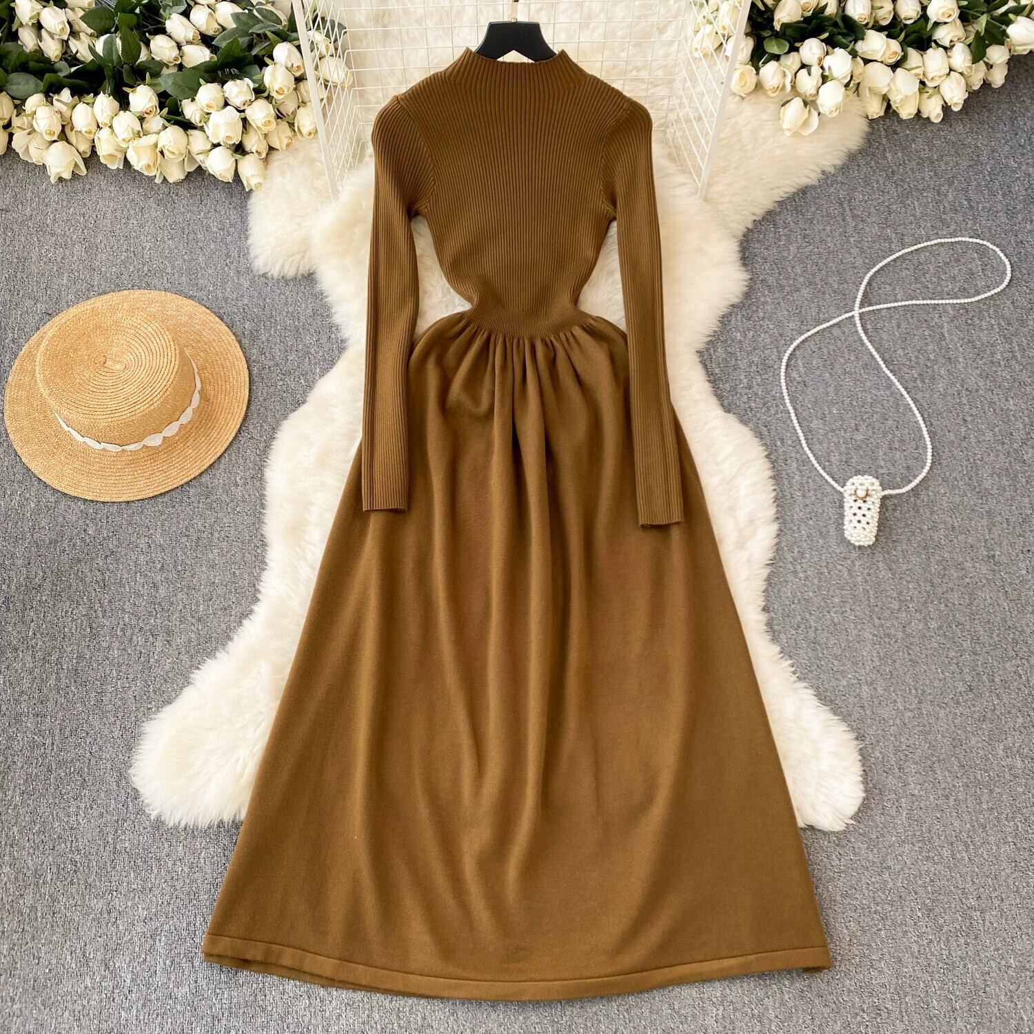 秋冬のシンプルで多用途なインナーセータードレスの女性、ハイエンドのウエストを細くし、エレガントなフレンチエレガントなニットスカート オータム 秋物 ウィンター 冬物 lyxaj63472374901