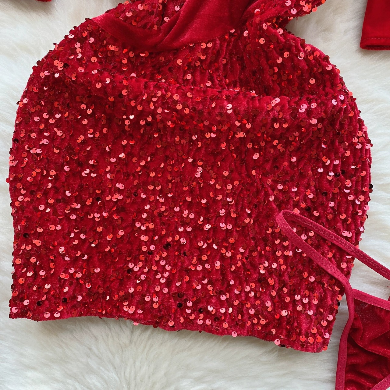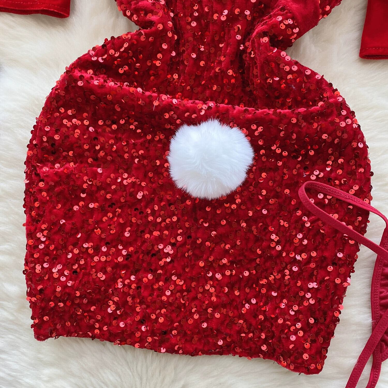 クリスマスパーティースーツフェミニン純粋な欲望の誘惑レッドチューブトップスパンコールスリムフィットヒップドレススーツ ピュア lyxaj82469317177