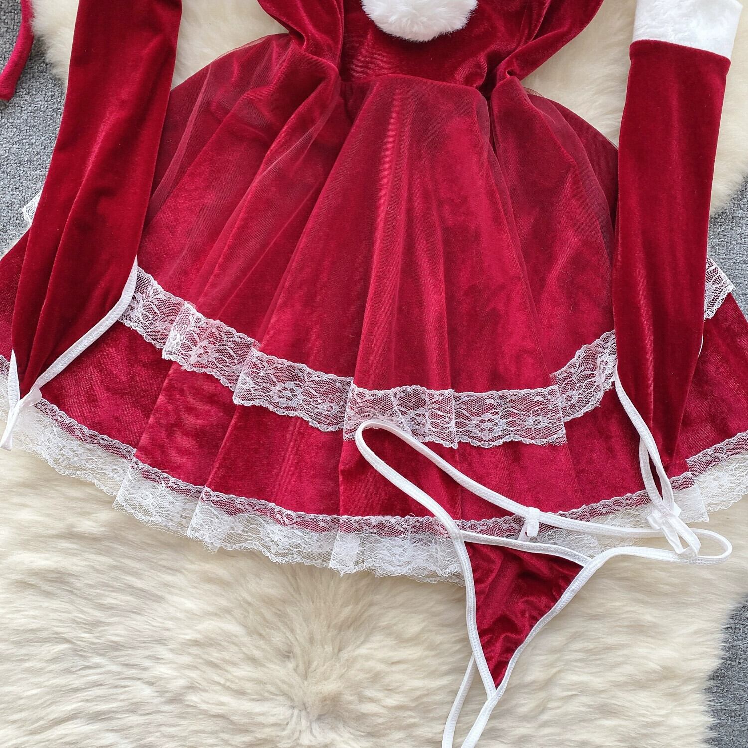年のクリスマス赤かわいいバニーユニムベルベット袖サスペンダードレス女性の純粋な欲望のセクシーなスーツ レッド 大人ガーリー スウィート キュート カジュアル ピュア lyxaj88937054628