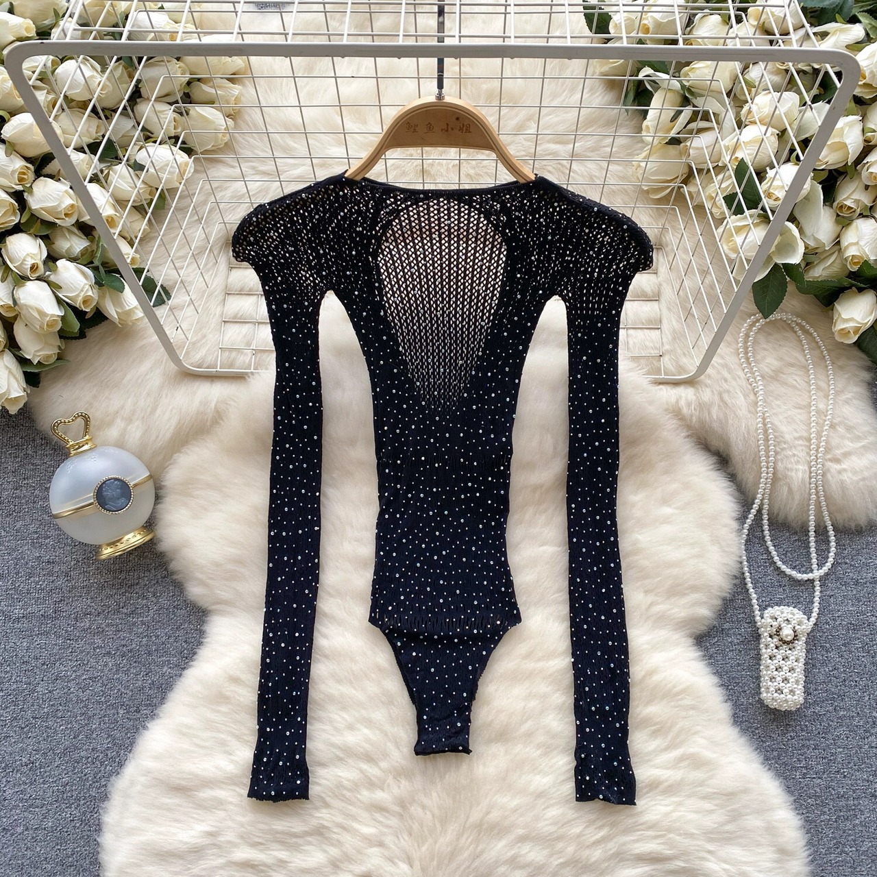 ダイヤモンド付きの軽量で豪華なヨーロッパとアメリカのネクタイ スタイルのジャンプスーツの女性、中空、シースルー タイツ、ニッチ デザイン、エレガントなレディ トップス ストッキング ソックス ヨーロピアン lyxaj39423404136