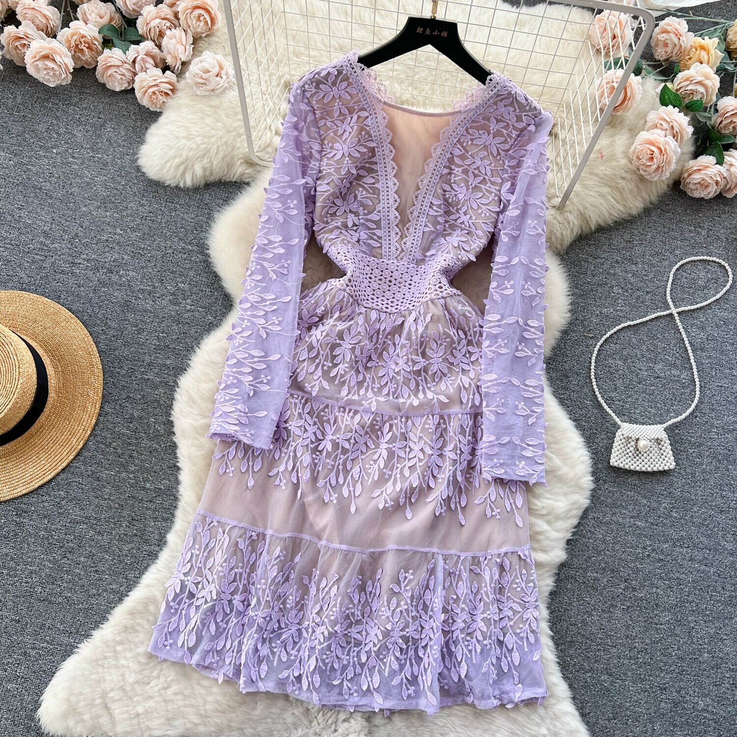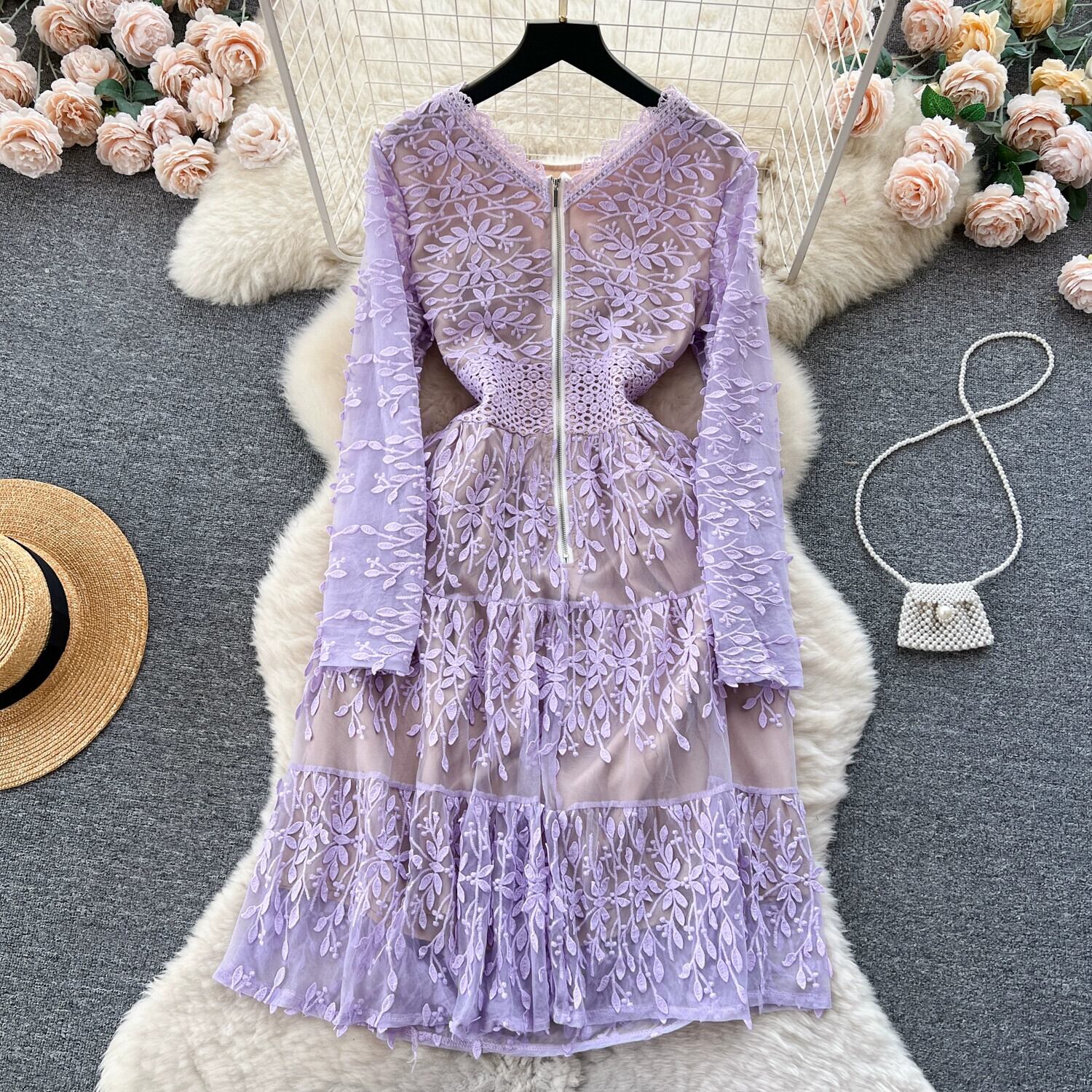 フレンチスイートヘビーデューティフラワー刺繍メッシュドレス女性、ハイエンドの気質、エレガントなウエストと痩身レディドレス レッド 大人ガーリー スウィート キュート カジュアル フラワーデザイン lyxaj69264755461