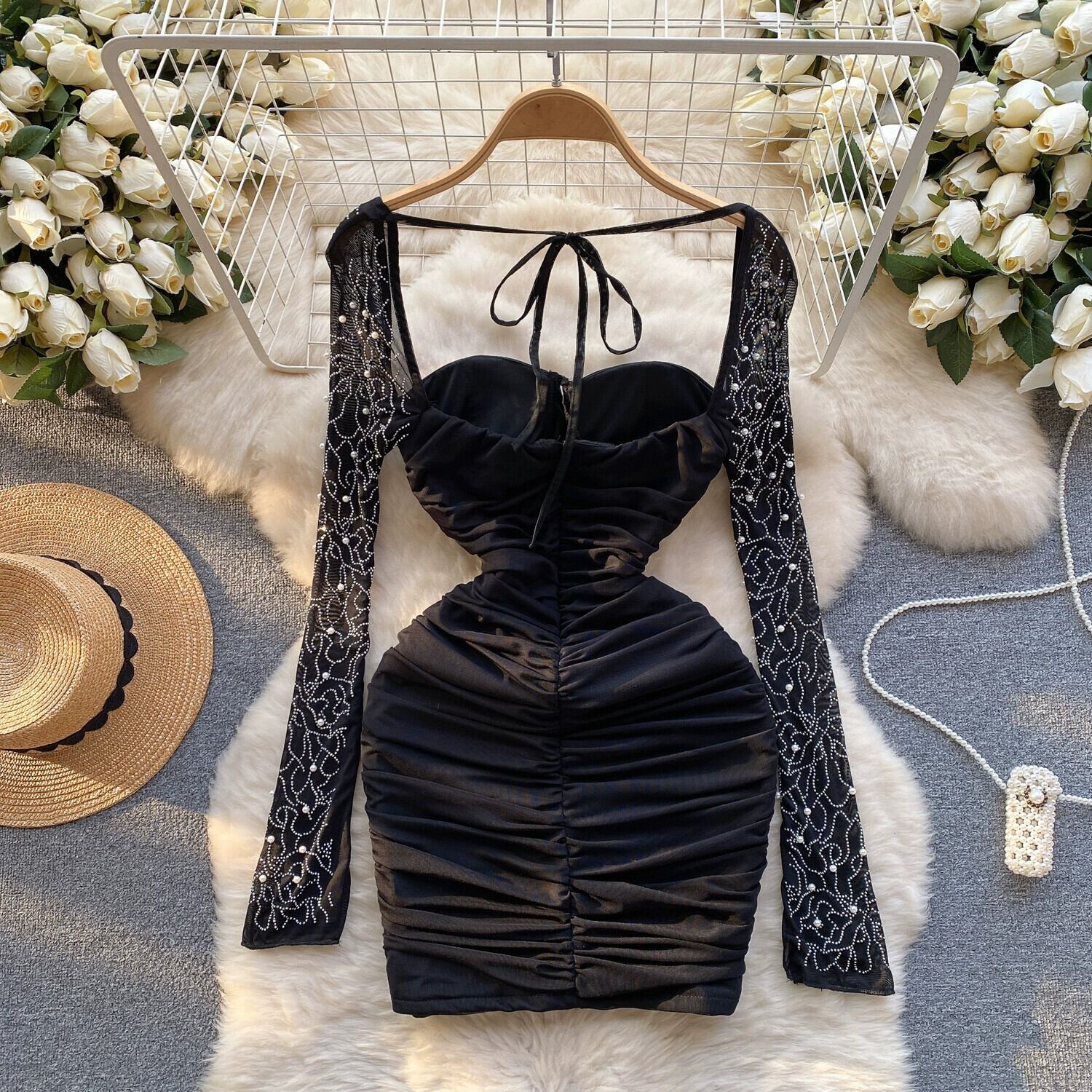 ライトラグジュアリー、純粋な欲望、スタイルチューブトップドレスレディース、メッシュストラップ、ラインストーン、タイトフィットデザイン、見事なヒップハグショートスカート ピュア lyxaj88147817372