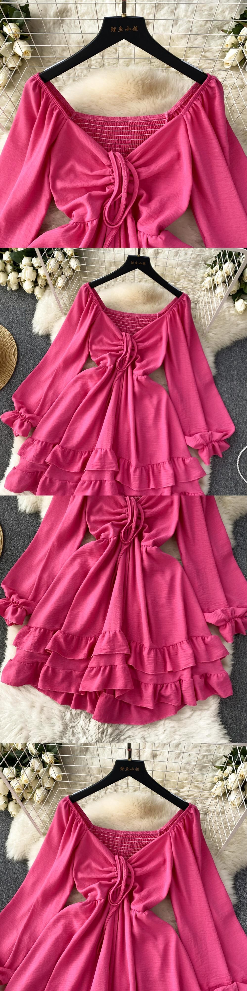 フランスのレディスタイルの高級ドレスの女性、巾着フリルランタンスリーブデザイン、ニッチライト高級気質スカート lyxaj631298028