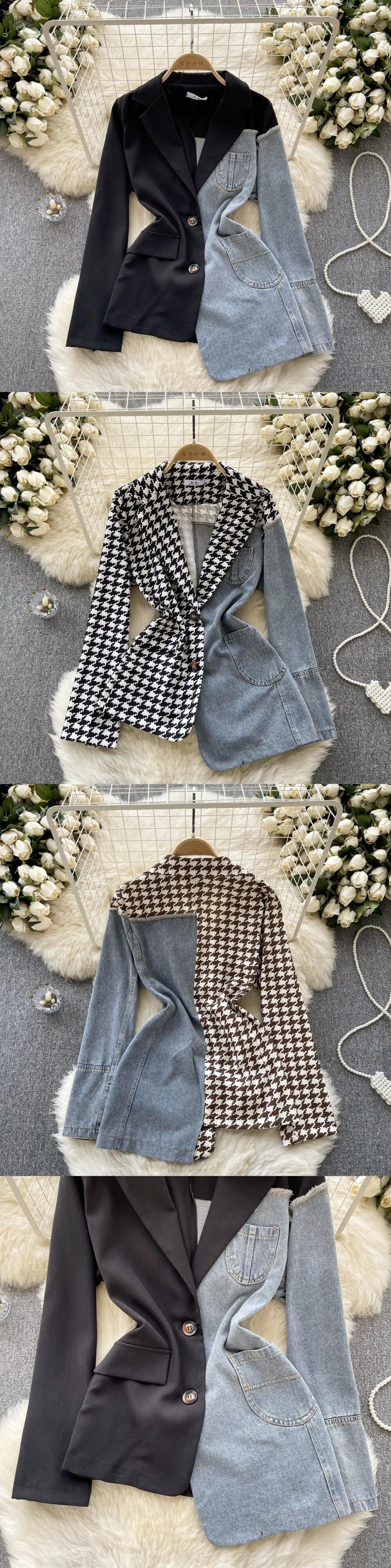 ライト高級ヨーロッパとアメリカのハイエンドブレザー女性の不規則なスプライシングデニムデザインファッショナブルなストリートスタイルのトップ ヨーロピアン lyxaj75915206984