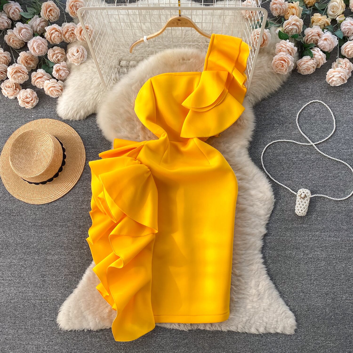 ヨーロッパとアメリカのセレブスタイルの高級イブニングドレスの女性、立体フリルエッジスリムフィットチューブトップ気質ドレス ヨーロピアン lyxaj13332345649