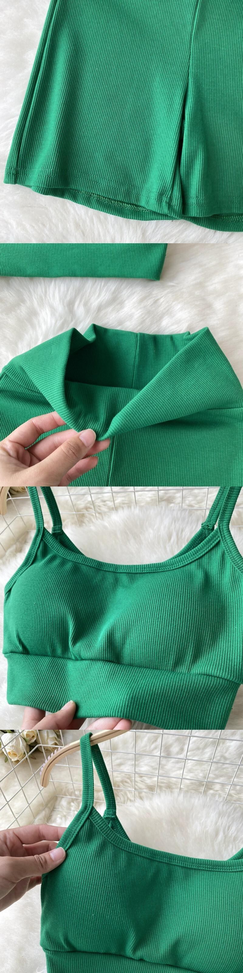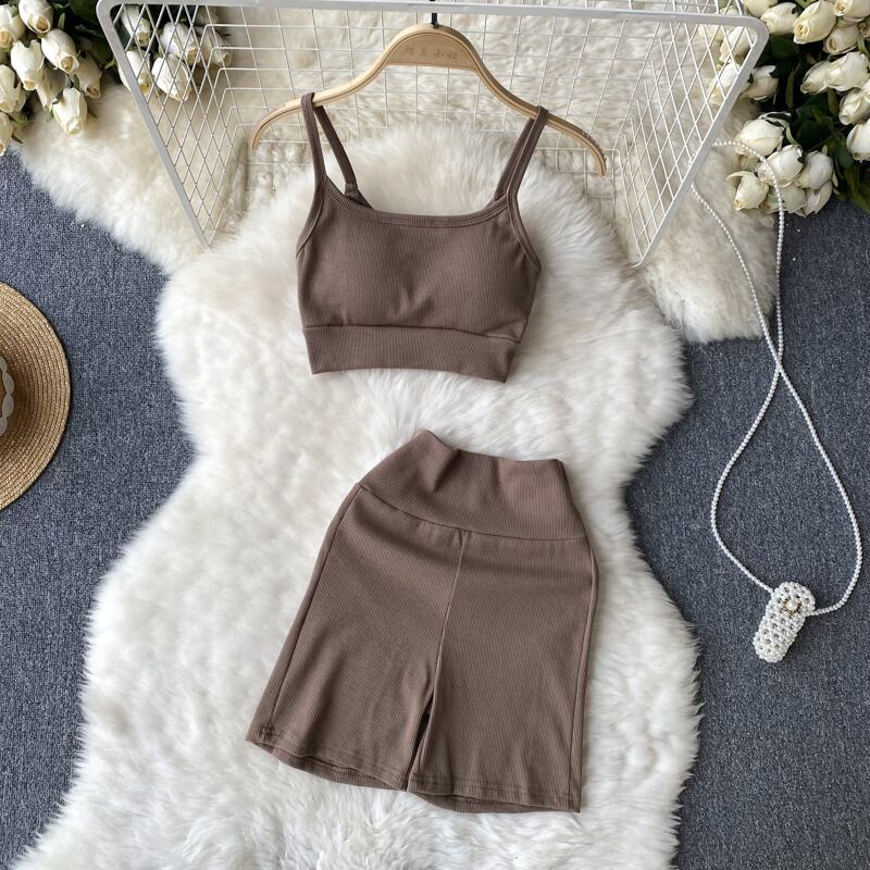 夏無地スポーツスーツ女性の胸パッド付きキャミソール + 腹制御バットリフティングボトミングショーツ 2 点セット サマー 夏物 ブルマー ソリッドカラー lyxaj85161618554