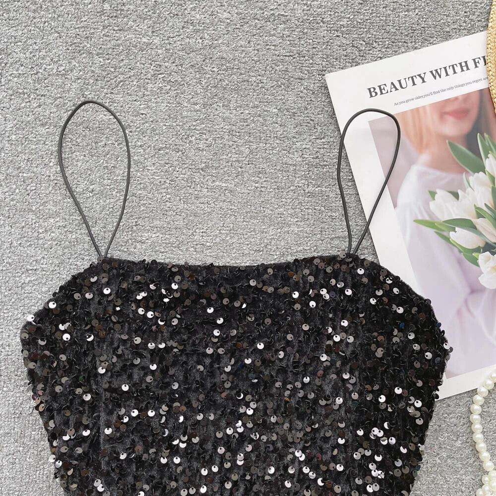 夏用の頑丈なスエード スパンコール キャミソール女性が内側と外側に着用、純粋なセクシーなネクタイセクシーなショート チューブ トップ スウェード サマー 夏物 ピュア lyxaj873984244